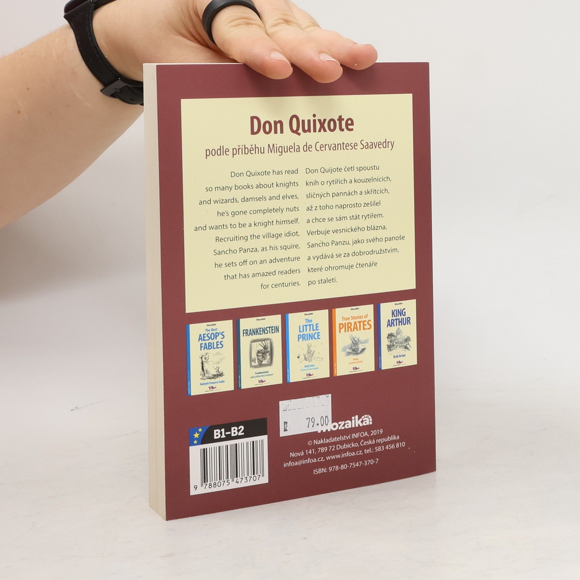 Převyprávění podle příběhu Miguela de Cervantese Saavedry - anglicko-český zrcadlový text. Don Quijote četl spoustu knih o rytířích a kouzelnicích, sličných pannách a skřítcích, až z toho naprosto zešílel a chce se sám stát rytířem. Verbuje vesnického blázna, Sancho Panzu, jako svého panoše a vydává se za dobrodružstvím, které ohromuje čtenáře po staletí. Text je navíc doplněn užitečnými poznámkami pod čarou, které čtenáře upozorní na důležitá anglická slovní spojení. Doporučujeme všem mírně pokročilým k procvičení pochopení anglického textu.