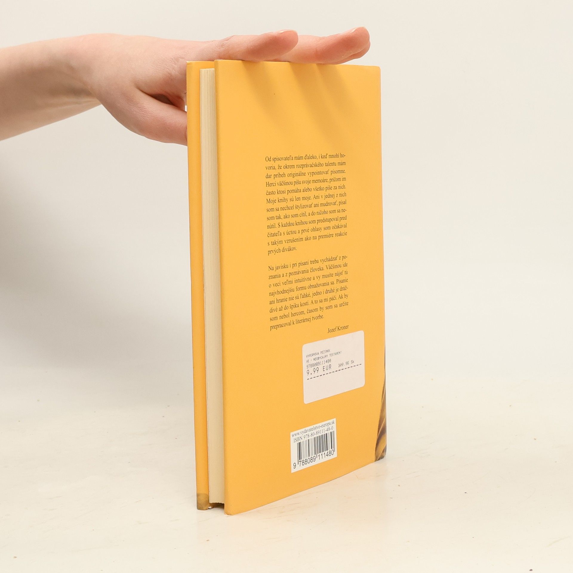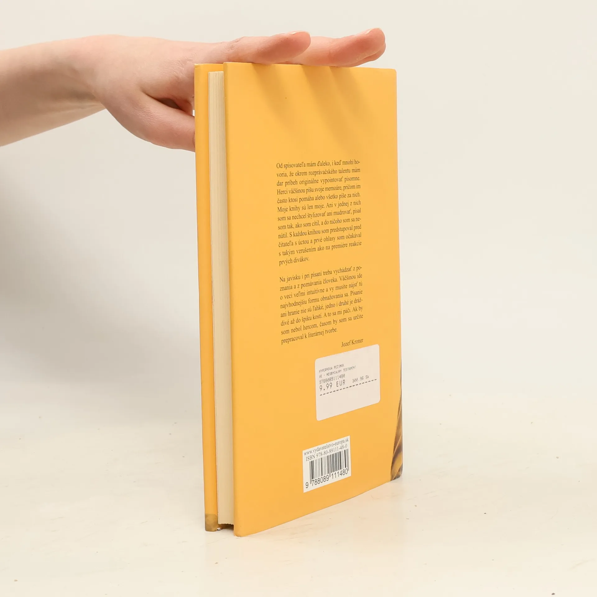 Autor, výnimočný slovenský herec o knihe vraví: "Herci väčšinou píšu svoje memoáre, pričom im často ktosi pomáha alebo všetko píše za nich. Moje knihy sú len moje." "Od spisovateľa mám ďaleko, i keď mnohí hovoria, že okrem rozprávačského talentu mám dar príbeh originálne vypointovať písomne. Herci väčšinou píšu svoje memoáre, pričom im často ktosi pomáha alebo všetko píše za nich. Moje knihy sú len moje. Ani v jednej z nich som sa nechcel štylizovať ani mudrovať, písal som tak, ako som cítil, a do ničoho som sa nenútil. S každou knihou som predstupoval pred čitateľa s úctou a prvé ohlasy som očakával s takým vzrušením ako na premiére reakcie prvých divákov. Na javisku i pri písaní treba vychádzať z poznania a z poznávania človeka. Väčšinou ide o veci veľmi intuitívne a vy musíte nájsť tú najvhodnejšiu formu obnažovania sa. Písanie ani hranie nie sú ľahké, jedno i druhé je dráždivé až do špiku kostí. A to sa mi páči. Ak by som nebol hercom, časom by som sa určite prepracoval k literárnej tvorbe." Jozef Kroner