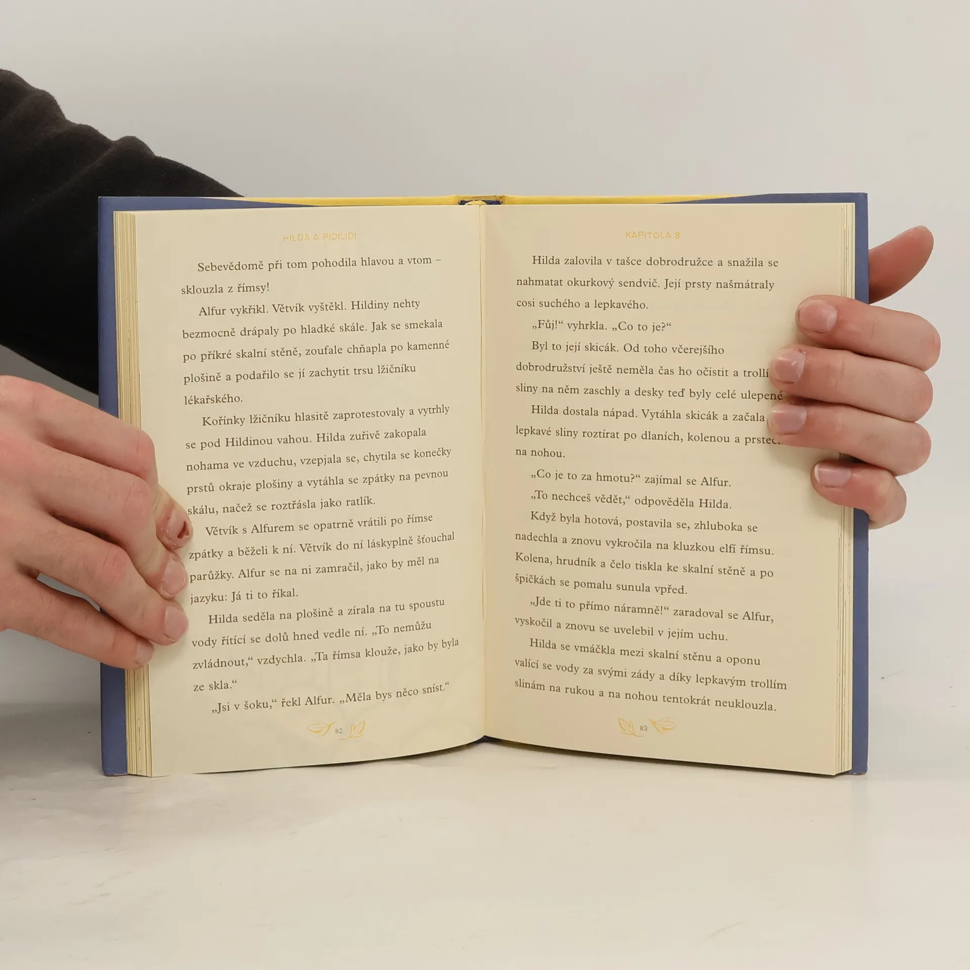 Tohle je Hilda, průzkumnice, dobrodružka a fanynka kamenů. Na světě má nejradši dvě věci: svůj skicák a psa Větvíka. Tedy, na světě má nejradši tři věci: svůj skicák, psa Větvíka a maminku. Pardon, na světě má nejradšisvůj skicák, psa Větvíka, maminku a všechny nadpřirozené bytosti a příšerky, které žijí u nich v údolí. Hildina dobrodružství nejprve uchvátila čtenářky a čtenáře komiksů, poté vznikl animovaný seriál od Netflixu a nyní je tu knižní série. Prožijte s Hildou znovu její první setkánís trollem nebo s párem zamilovaných obrů. Pro skalní fanynky a fanoušky nabízí kniha desítky nových ilustrací a rozšíření smyšlené krajiny, do které se tak rádi vracíme. A pokud jste o Hildě nikdy neslyšeli, máme pro vás dvě otázky: Na co čekáte? A bolí oči hodně, když člověk poprvé vyleze z jeskyně?