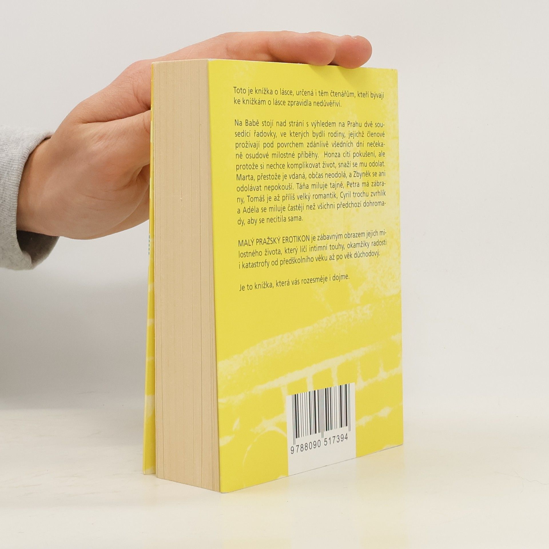 Malý pražský erotikon je druhým románem režiséra a autora úspěšných divadelních komedií Patrika Hartla, jehož literární prvotina PRVOK, ŠAMPÓN, TEČKA a KAREL se těší velkému zájmu čtenářů. Tento nový román je díky autorovu nekonformnímu nadhledu a smyslu pro humor určený i těm, kteří bývají ke knížkám o lásce zpravidla nedůvěřiví. Na Babě stojí nad strání s výhledem na Prahu dvě sousedící řadovky, ve kterých bydlí rodiny, jejichž členové prožívají pod povrchem zdánlivě všedních dní nečekaně osudové milostné příběhy. Honza cítí pokušení, ale protože si nechce komplikovat život, snaží se mu odolat. Marta, přestože je vdaná, občas neodolá, a Zbyněk se ani odolávat nepokouší. Táňa miluje tajně, Petra má zábrany, Tomáš je až příliš velký romantik, Cyril trochu zvrhlík a Adéla se miluje častěji než všichni předchozí dohromady, aby se necítila sama. Malý pražský erotikon je zábavným obrazem jejich intimního života, který líčí jejich touhy, okamžiky radosti i katastrofy od předškolního věku až po věk důchodový.