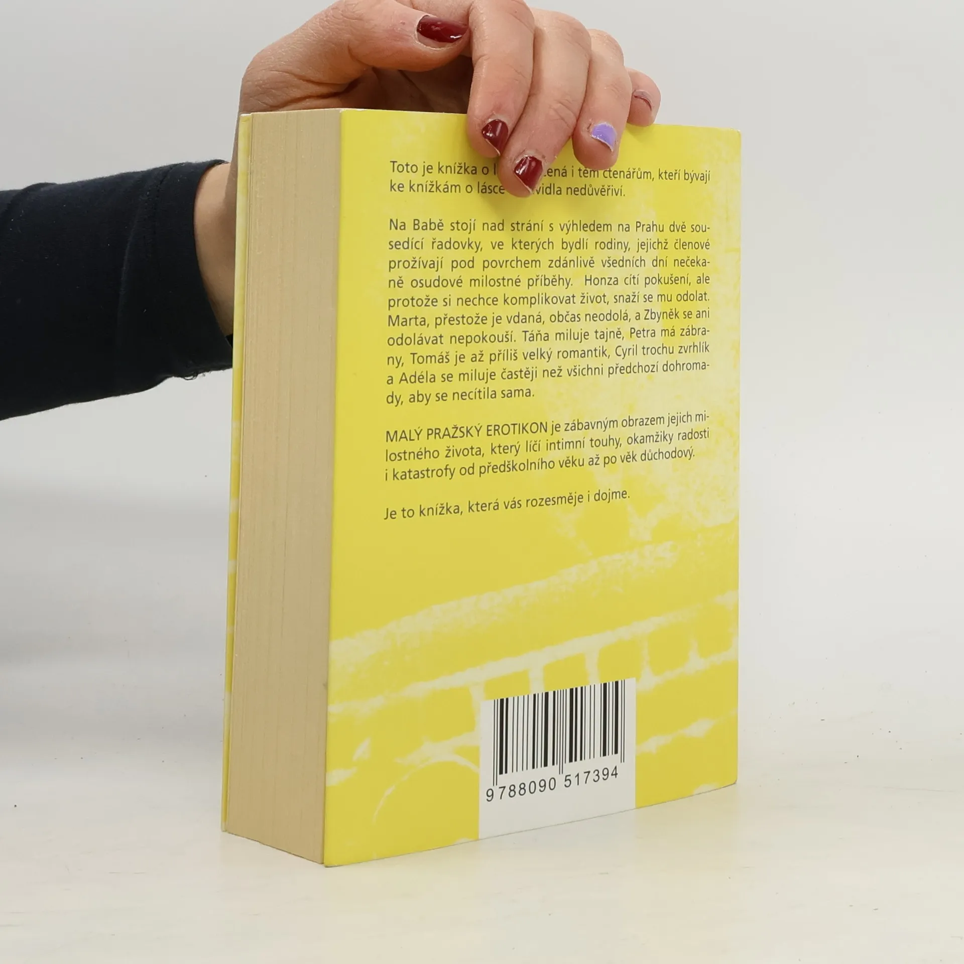 Malý pražský erotikon je druhým románem režiséra a autora úspěšných divadelních komedií Patrika Hartla, jehož literární prvotina PRVOK, ŠAMPÓN, TEČKA a KAREL se těší velkému zájmu čtenářů. Tento nový román je díky autorovu nekonformnímu nadhledu a smyslu pro humor určený i těm, kteří bývají ke knížkám o lásce zpravidla nedůvěřiví. Na Babě stojí nad strání s výhledem na Prahu dvě sousedící řadovky, ve kterých bydlí rodiny, jejichž členové prožívají pod povrchem zdánlivě všedních dní nečekaně osudové milostné příběhy. Honza cítí pokušení, ale protože si nechce komplikovat život, snaží se mu odolat. Marta, přestože je vdaná, občas neodolá, a Zbyněk se ani odolávat nepokouší. Táňa miluje tajně, Petra má zábrany, Tomáš je až příliš velký romantik, Cyril trochu zvrhlík a Adéla se miluje častěji než všichni předchozí dohromady, aby se necítila sama. Malý pražský erotikon je zábavným obrazem jejich intimního života, který líčí jejich touhy, okamžiky radosti i katastrofy od předškolního věku až po věk důchodový.