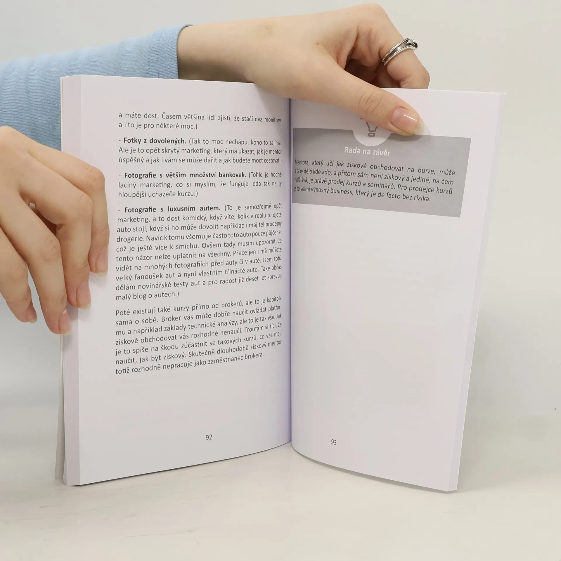 Cílem této knihy je čtenářům prakticky vysvětlit většinu snadných způsobů, jak se skutečně vydělávají peníze na burze a na lidech, co chtějí obchodovat. Kniha vám nebude nabízet žádné způsoby na zázračné zbohatnutí za dva měsíce, ale prakticky rozebere jednoduché postupy, které vydělávají, ale nikdo vám je neřekne. Obsah knihy je rozhodně ten nejkontroverznější, co autor kdy napsal, a je si jist, že mnozí z prostředí obchodování na burze odhalením jednotlivých metod nebudou nadšeni. Díky informacím uvedeným v této knize se vyhnete většině špatných rozhodnutí, kterými si musí začátečníci projít.