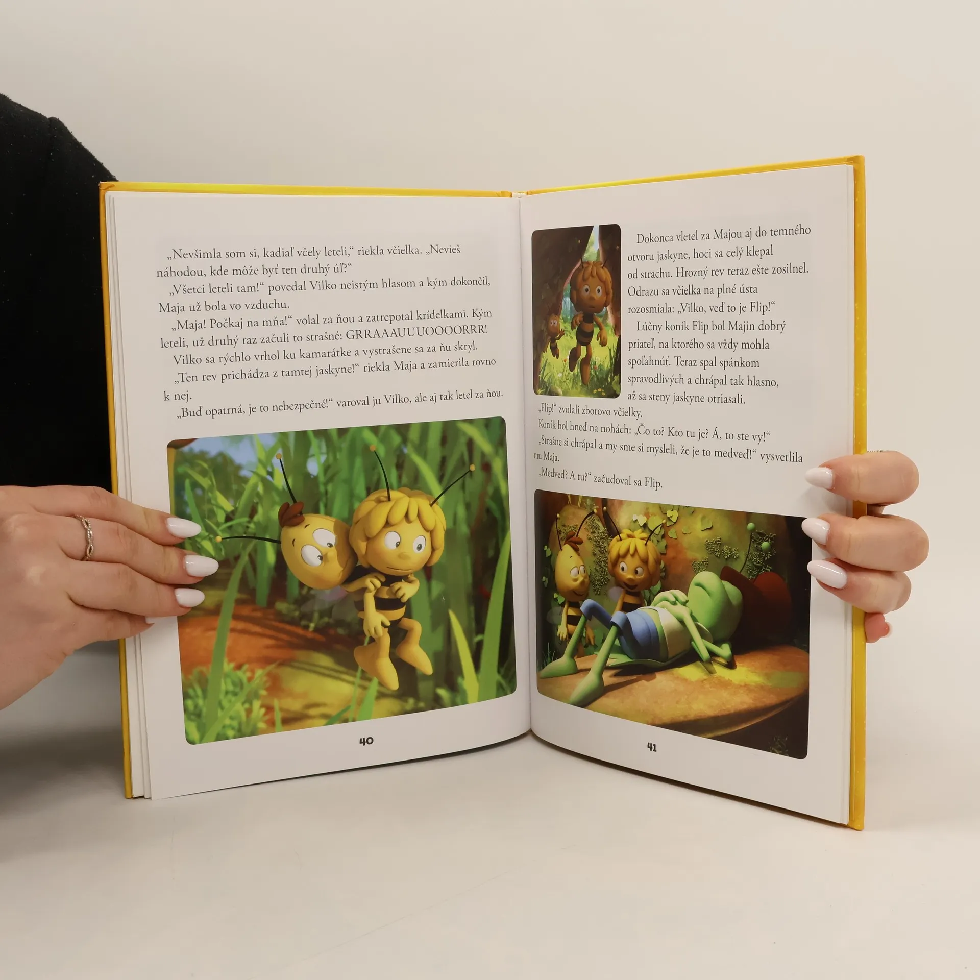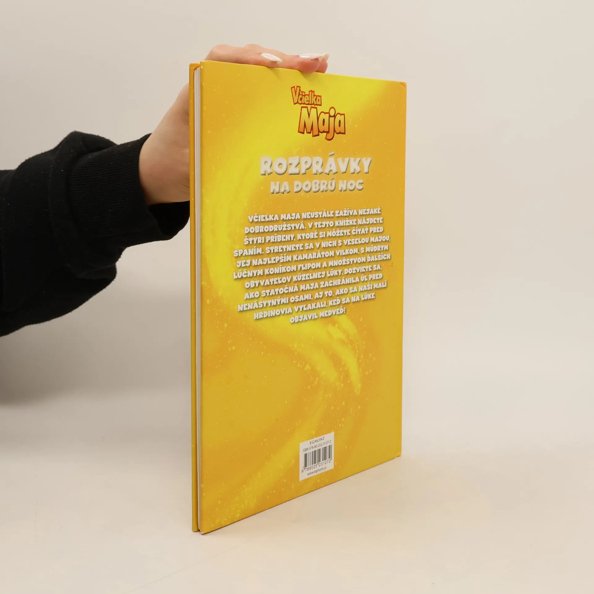 Včielka Maja neustále zažíva nejaké dobrodružstvá. V tejto knižke nájdete štyri príbehy, ktoré si môžete čítať pred spaním. Stretnete sa v nich s veselou Majou, jej najlepším kamarátom Vilkom, s múdrym lúčnym koníkom Flipom a mnohými ďalšími obyvateľmi kúzelnej lúky. Dozviete sa, ako statočná Maja zachránila úľ pred nenásytnými osami a ako sa naši malí hrdinovia vyľakali, keď sa na lúke objavil medveď!