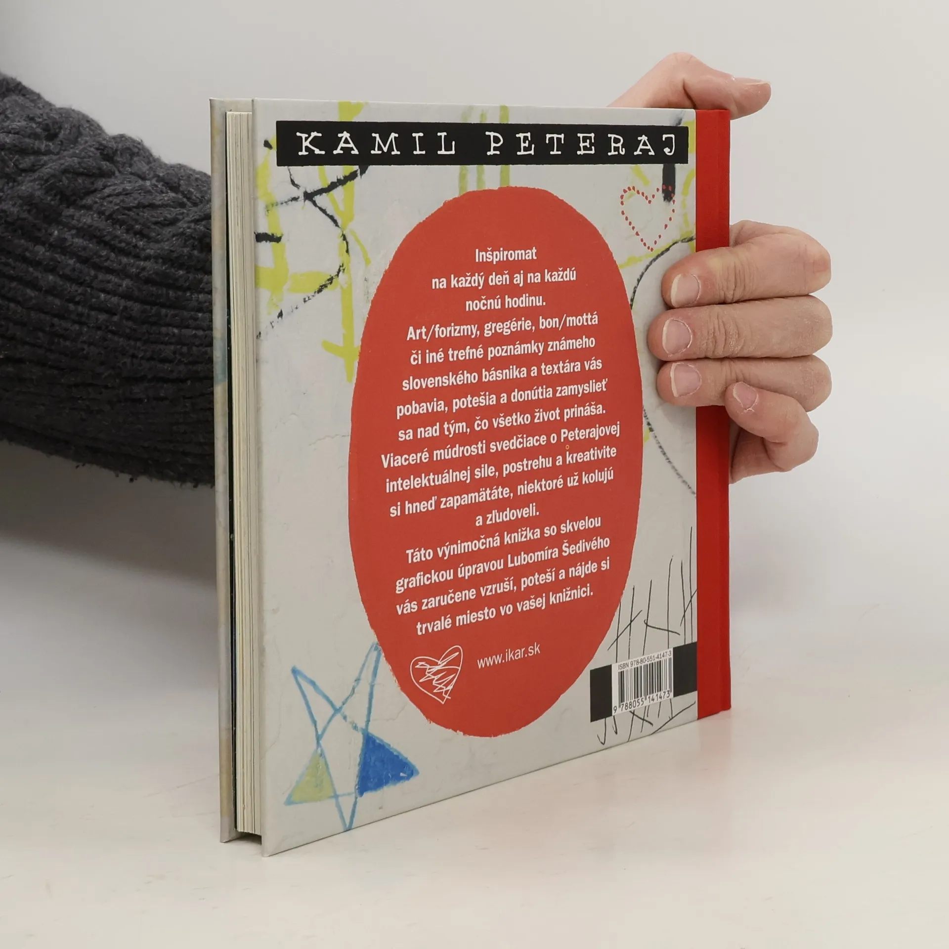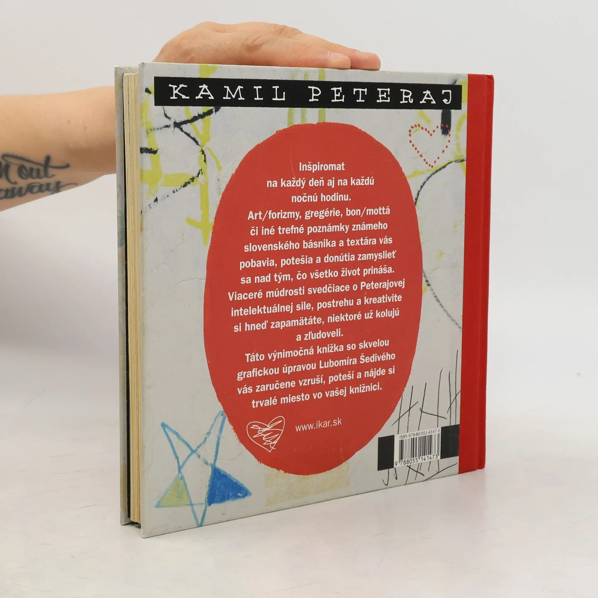Inšpiromat na každý deň aj na každú nočnú hodinu. Art/forizmy, gregérie, bon/mottá či iné trefné poznámky známeho slovenského básnika a textára vás pobavia, potešia a donútia zamyslieť sa nad tým, čo všetko život prináša. Viaceré múdrosti svedčiace o Peterajovej intelektuálnej sile, postrehu a kreativite si hneď zapamätáte, niektoré už kolujú a zľudoveli. Táto výnimočná knižka so skvelou grafickou úpravou Ľubomíra Šedivého vás zaručene vzruší, poteší a nájde si trvalé miesto vo vašej knižnici.