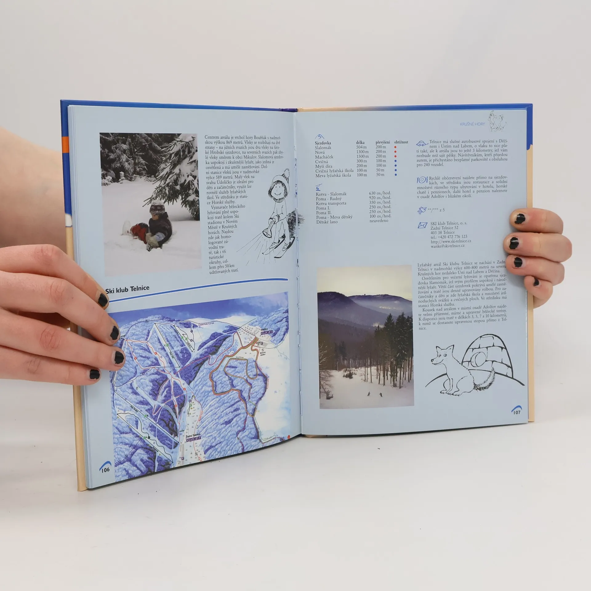 Kniha představuje čtenářům významnější lyžařská střediska v České republice. U každého z nich je zevrubný popis areálu a nabízených služeb, uvedena finanční dostupnost, možnosti večerního lyžování, lyžařských škol pro děti i pro dospělé, délka a obtížnost sjezdových tratí s kapacitou vleků a lanovek či to, jak se k němu dopravit. Střediska jsou přehledně seřazena do kapitol podle horských oblastí, doplněna mapkami sjezdovek, fotografiemi a ilustracemi.