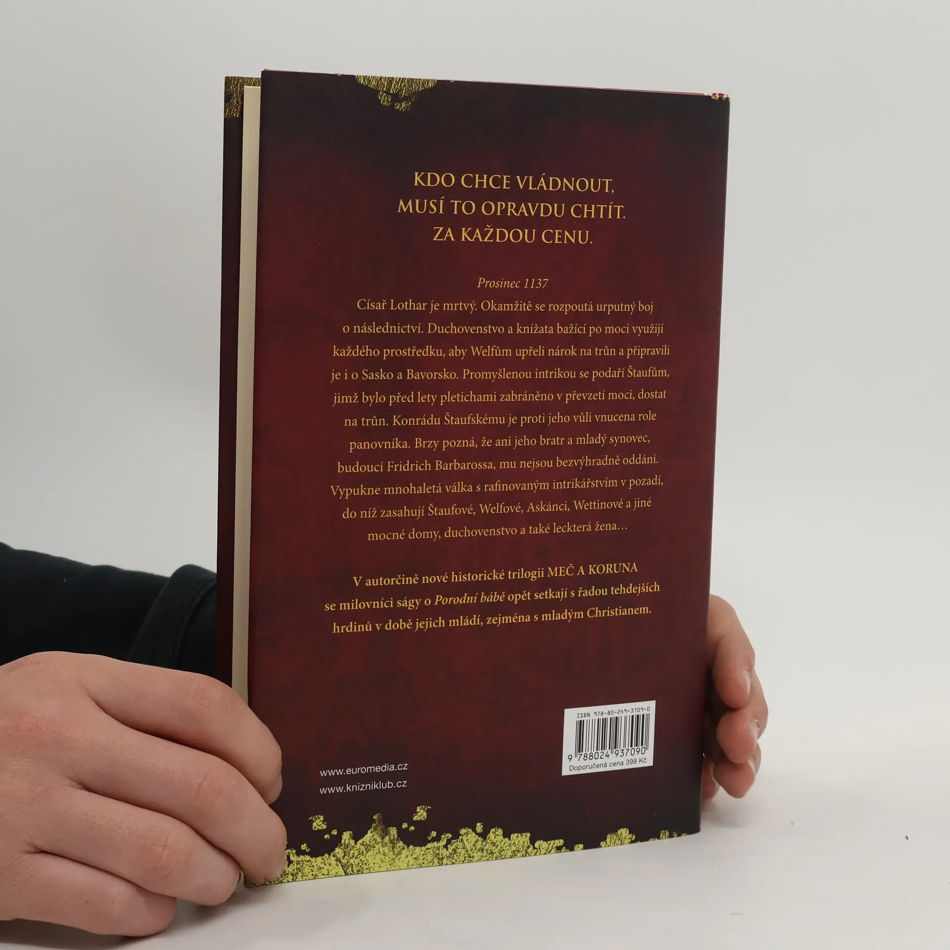 Začátek nevšední středověké trilogie MEČ A KORUNA dějově volně předchází pentalogii o Porodní bábě. Mistr mystifikace je úvod epické ságy, v níž nás autorka zavádí do pohnutých časů 12. století. Po smrti císaře Lothara v roce 1137 bojují Štaufové a Welfové o trůn, zatímco Askánci, Wettinové a jiné vlivné šlechtické rody se snaží udržet a rozšířit svá mocenská postavení. Nikdo z nich se neštítí jakéhokoli prostředku k dosažení svého cíle: intrik, zrady, vynucených manželských svazků ani otevřené války. Vazalové se musí rozhodnout, na kterou stranu se postaví, mladičké dívky jsou zavlečeny jako záruka věrnosti, některé ženy mají strach, jiné naopak v sobě najdou sílu se prosadit. Sledujeme vzestup Fridricha Barbarossy v nejmocnějšího panovníka středověku i pohnutý osud mladičké Kunigundy z Plötzkau, která musí překonat sama sebe. Milovníci historické ságy Sabine Ebertové o Porodní bábě se v této nové trilogii setkají s řadou tehdejších protagonistů v době jejich mládí, zejména s mladým Christianem.