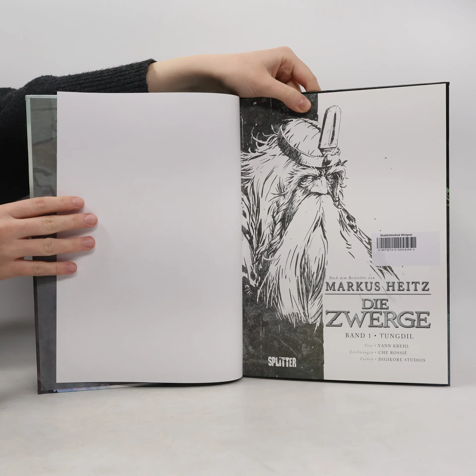 Markus Heitz im Jahr 2003 veröffentlichter Roman "Die Zwerge" (dem bis 2008 noch drei weitere "Zwerge"-Werke folgten) zählt zu den erfolgreichsten deutschen Fantasy-Romanen und befand sich über Monate auf den Belletristik-Bestsellerlisten. Für Heitz selbst markierte die Veröffentlichung den endgültigen Durchbruch als Autor. Es folgten Hörbuch-Adaptionen und spektakulär inszenierte Lesungen, die einem aufwändigen Theaterstück glichen. Konzipiert als vierbändige Reihe (die nach Abschluss zudem um eine Gesamtausgabe im Graphic Novel-Format ergänzt werden soll) beginnt nun beim Splitter Verlag die nächste mediale Übersetzung des ersten Buchs: Der spektakuläre Überlebenskampf der Zwerge, deren Land von gleich drei gewaltigen Kräften bedroht wird den Trollen, den Ogern und den Orks , hält nun auch im Comic Einzug. In Zusammenarbeit mit Szenarist Yann Krehl ("Das Wolkenvolk", "Frostfeuer") wird Zeichner Che Rossié den Roman in vier Alben adaptieren. Ein atemberaubendes Comicdebut des bislang hauptsächlich im Rollenspiel-Segment tätigen Mönchengladbachers.