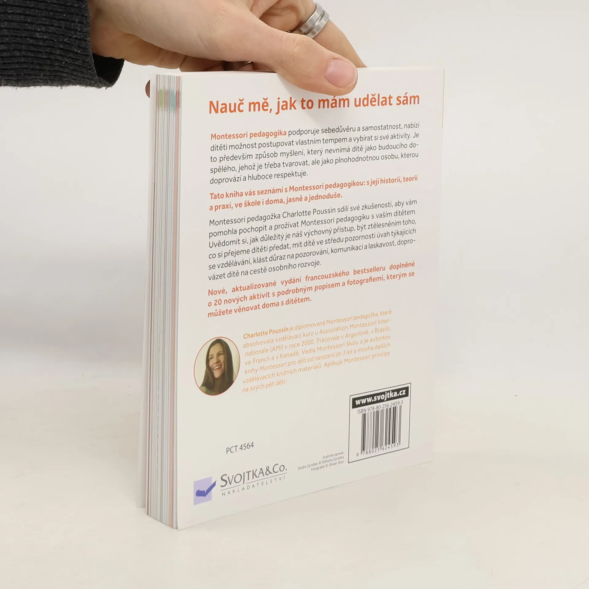Pedagogika podle Marie Montessori staví do popředí co největší míru samostatnosti dítěte, dává mu možnost postupovat v učení vlastním tempem a vybírat si, jakým aktivitám se bude věnovat. Tato kniha vysvětluje pedagogiku Montessori od základu a činí tak přístupným a srozumitelným způsobem. Obsahuje jak historii tohoto alternativního pedagogického směru, který je u nás stále oblíbenější, tak jeho hlavní principy, etapy vývoje dítěte, vhodné pomůcky i popisy role toho, kdo dítě na jeho cestě vzděláváním provází doma i ve škole. V knize naleznete rovněž návrhy na aktivity: praktické, senzorické, jazykové a matematické.
