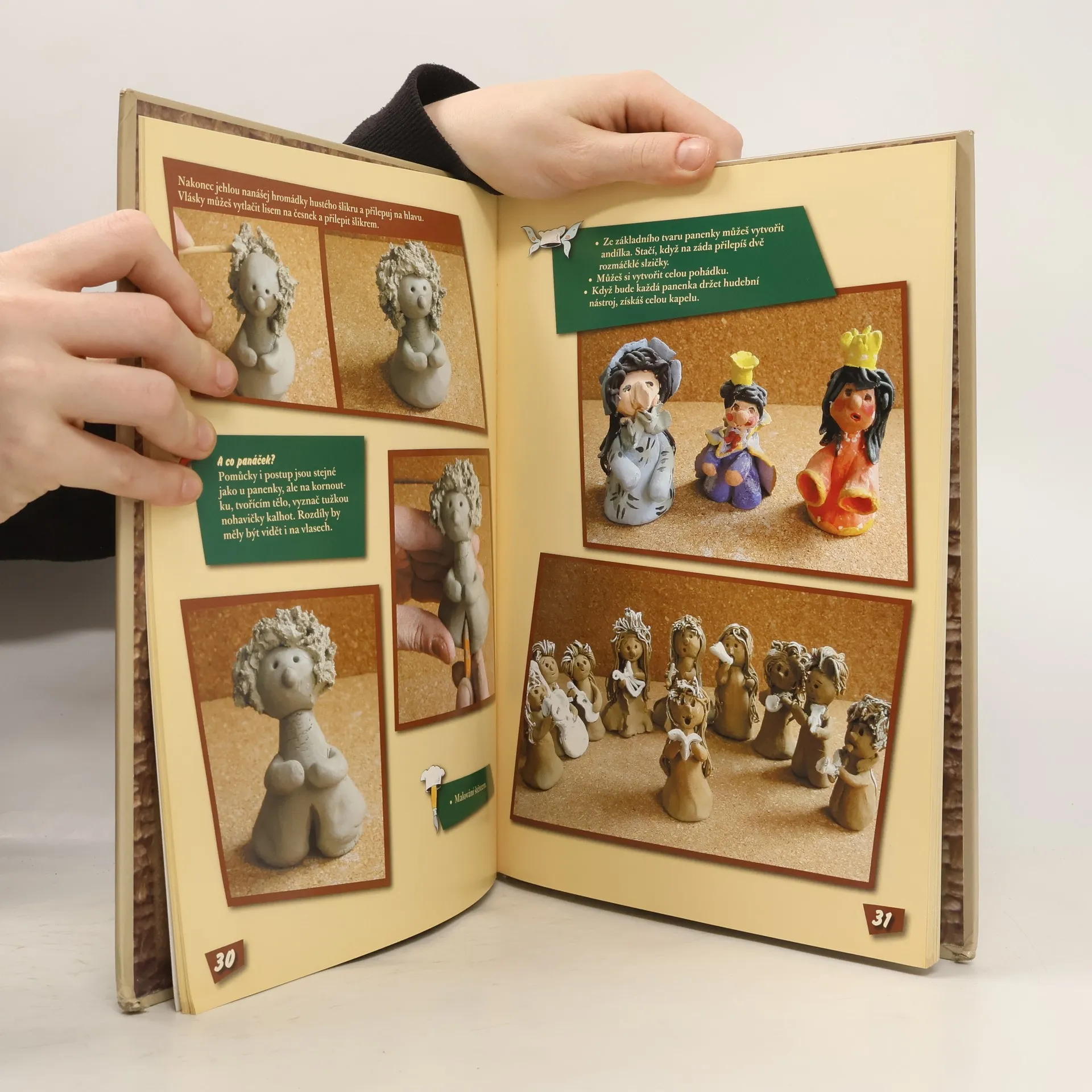 Příručka pomocí barevných fotografií seznamuje malé i velké šikuly s výrobou jednoduchých dekoračních předmětů, např. závěsných obrázků, různě zdobených misek, zvířátek atd. Jednotlivé náměty jsou podrobně rozfázovány na fotografiích a doplněny popisem. Přestože některé předměty působí až trochu kýčovitě, najde se zde mnoho pěkných nápadů, které by bylo škoda nezkusit.