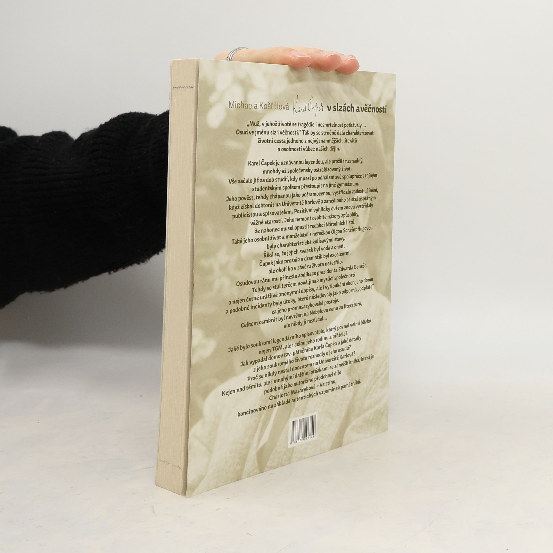 Životní cesta jednoho z nejvýznamnějších literátů našich dějin, Karla Čapka, je plná tragédií i nesmrtelnosti. Jeho začátky byly poznamenány obtížemi, když musel po odhalení spolupráce s tajným spolkem přestoupit na jiné gymnázium. Po získání doktorátu na Univerzitě Karlově se stal úspěšným publicistou a spisovatelem, avšak pozitivní vyhlídky brzy nahradily vážné starosti. Jeho nemoc a osobité názory vedly k odchodu z redakce Národních listů. Osobní život a manželství s herečkou Olgou Scheinpflugovou byly poznamenány kolísavými stavy, přičemž jejich svazek byl přirovnáván k vodě a ohni. Čapek exceloval jako prozaik a dramatik, ale na konci života čelil útokům společnosti, která ho považovala za promařkovského. Po abdikaci prezidenta Beneše se stal terčem urážek, včetně anonymních dopisů a vandalismu. I přes osm nominací na Nobelovu cenu za literaturu ji nikdy nezískal. Kniha se zaměřuje na jeho soukromí, vztahy s TGM a jeho rodinou, a na detaily, které ovlivnily jeho osud, včetně důvodů, proč se nikdy nestal docentem na Univerzitě Karlově. Autorka vychází z autentických vzpomínek pamětníků, podobně jako v předchozím díle o Charlottě Masarykové.