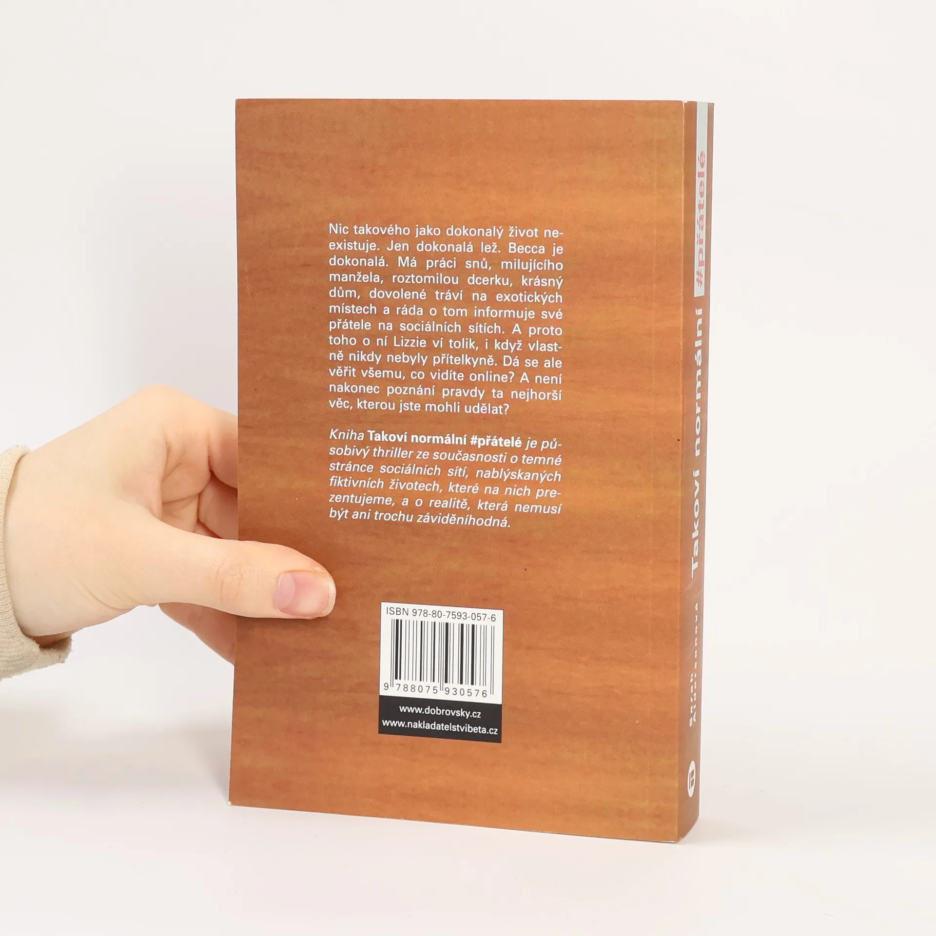 Nic takového jako dokonalý život neexistuje. Jen dokonalá lež. Becca je dokonalá. Má práci snů, milujícího manžela, roztomilou dcerku, krásný dům, dovolené tráví na exotických místech a ráda o tom informuje své přátele na sociálních sítích. A proto toho o ní Lizzie ví tolik, i když vlastně nikdy nebyly přítelkyně. Dá se ale věřit všemu, co vidíte online? A není nakonec poznání pravdy ta nejhorší věc, kterou jste mohli udělat? Kniha Takoví normální #přátelé je působivý thriller ze současnosti o temné stránce sociálních sítí, nablýskaných fiktivních životech, které na nich prezentujeme, a realitě, která nemusí být ani trochu záviděníhodná.