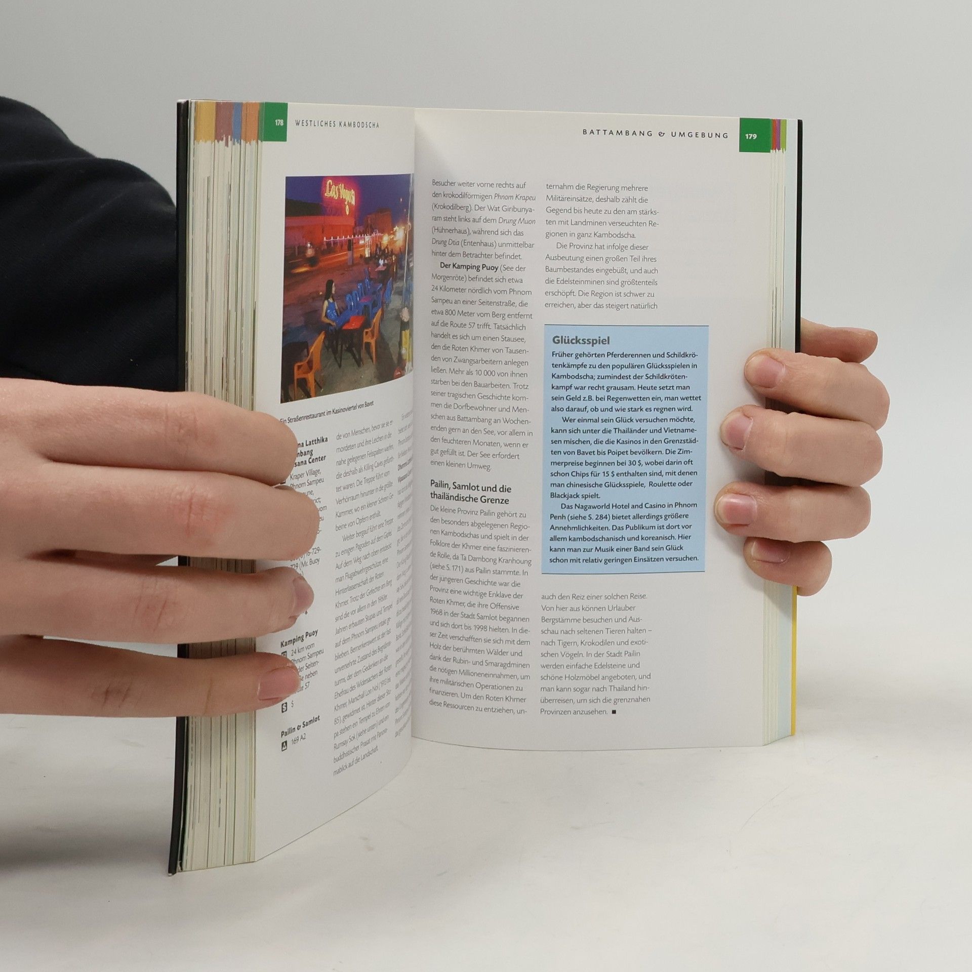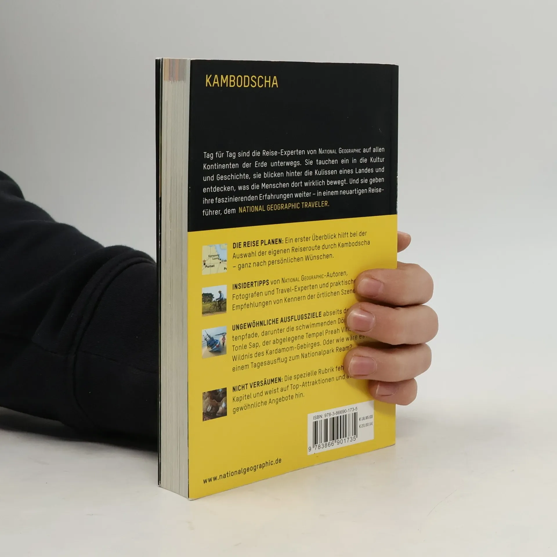 Kambodscha liegt in Südostasien am Golf von Thailand. Es grenzt an Thailand, Laos und Vietnam, die Hauptstadt Kambodschas ist Phnom Penh. Besondere geografische Merkmale sind der See Tonle Sap und der Mekong, einer der zehn längsten Flüsse der Welt. Neben dem klassischen Trip nach Angkor Wat bietet Kambodscha viele Aktivitäten für abenteuerlustige Reisende: Versteckte Dschungeltempel, die über lange, schwer befahrbare Seitenstraßen zugänglich sind, Boottrips auf dem mächtigen Mekong oder Schnorcheln in tropischen Gewässern. Lassen Sie sich doch einmal von NATIONAL GEOGRAPHIC durch Kambodscha führen. Perfekt recherchierte Informationen, aktuelle Insider-Tipps vom Autoren, detailliertes Kartenmaterial und nicht zuletzt grandiose Fotos - der NATIONAL GEOGRAPHIC TRAVELER bietet Ihnen mehr als ein Reiseführer, er dokumentiert das Einzigartige und die Vielfalt der Länder, ihrer Kulturen und Menschen. Detaillierte Beschreibungen und Hintergrundinformationen Fundierte Beiträge zu Geschichte, Kultur und Gegenwart Mehr als 280 hervorragende Farbfotos20 farbige KartenSpaziergänge und Ausflüge mit eigenen KartenAnschauliche Grafiken Klarer, leicht verständlicher Aufbau Reiseinformationen, Hotels, Restaurants, Geschäfte und Unterhaltungsangebote 320 Seiten Format: 11,9 x 19,1 cm