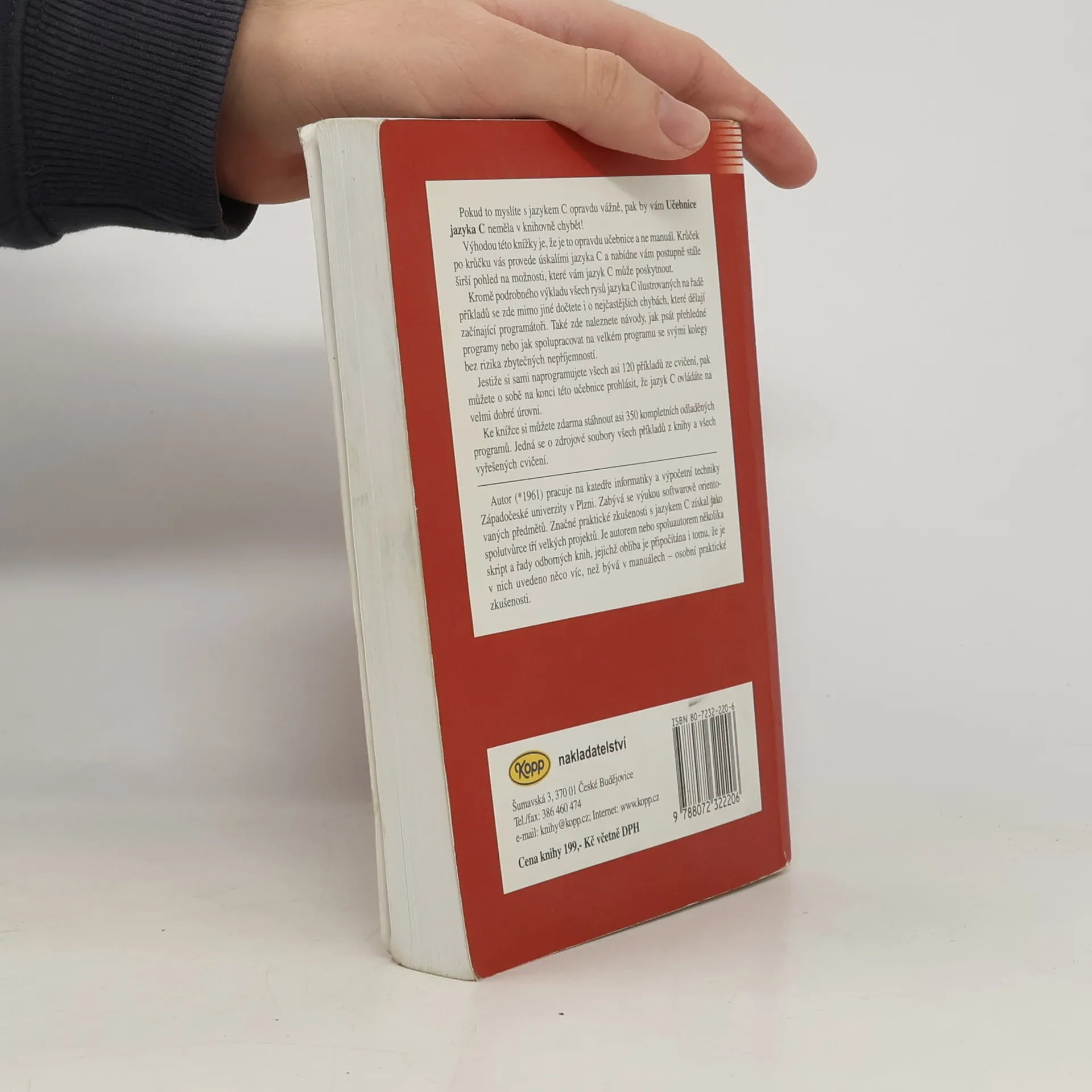 4. vydání 1. dílu. Pokud to myslíte s jazykem C opravdu vážně, pak by vám Učebnice jazyka C neměla v knihovně chybět! Výhodou této knížky je, že je to opravdu učebnice a ne manuál. Krůček po krůčku vás provede úskalími jazyka C a nabídne vám postupně stále širší pohled na možnosti, které vám jazyk C může poskytnout. Kromě podrobného výkladu všech rysů jazyka C ilustrovaných na řadě příkladů se zde mimo jiné dočtete i o nejčastějších chybách, které dělají začínající programátoři. Také zde naleznete návody, jak psát přehledné programy nebo jak spolupracovat na velkém programu se svými kolegy bez rizika zbytečných nepříjemností. Jestiže si sami naprogramujete všech asi 120 příkladů ze cvičení, pak můžete o sobě na konci této učebnice prohlásit, že jazyk C ovládáte na velmi dobré úrovni. Ke knížce si můžete z přílohy zdarma stáhnout asi 350 kompletních odladěných programů. Jedná se o zdrojové soubory všech příkladů z knihy a všech vyřešených cvičení. Upozornění: Balík zdrojových souborů je společný i pro 2. díl Učebnice jazyka C (2. vydání). Tyto dvě knihy na sebe velmi úzce navazují!