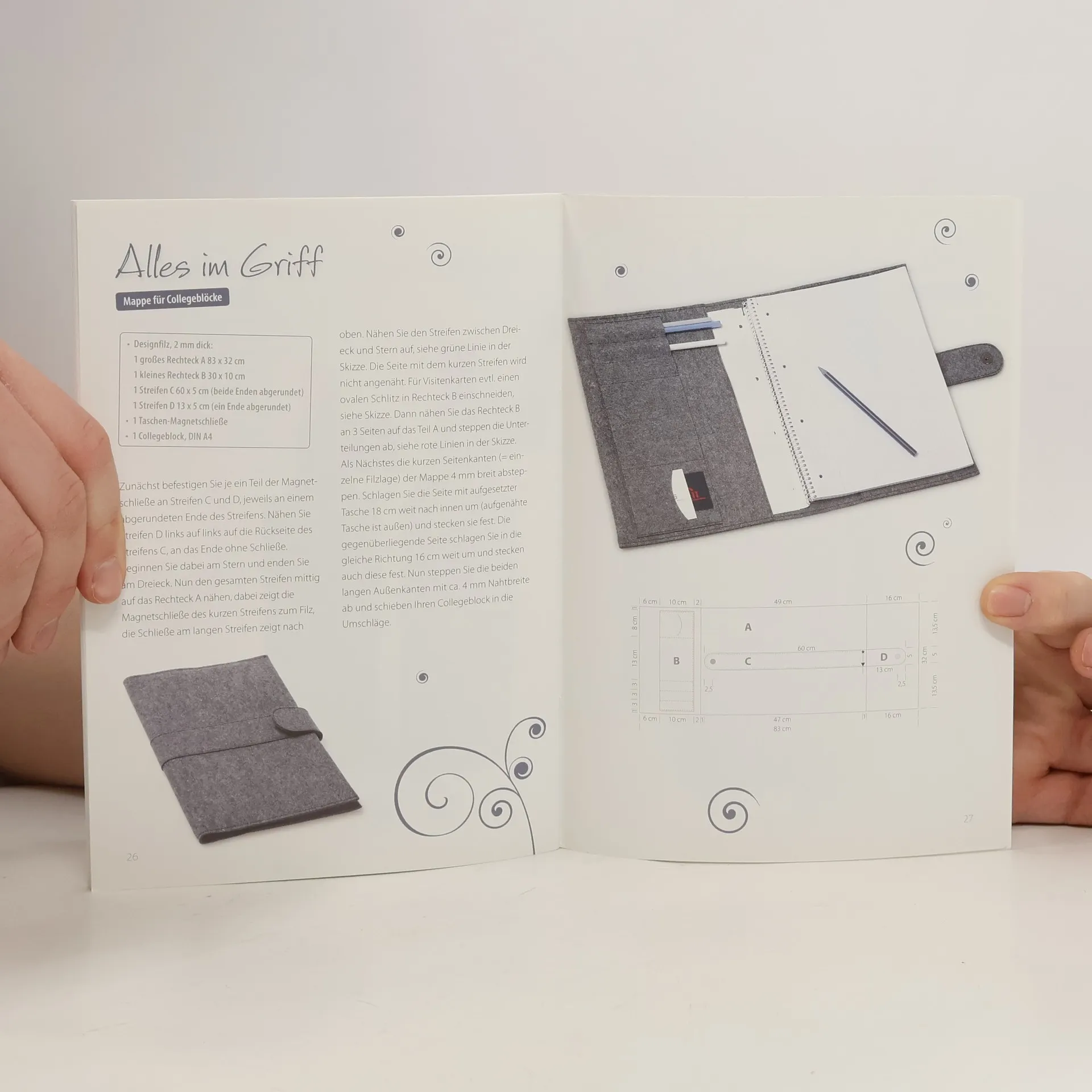 Schlicht, schön und edel Filz und besonders der edle Design- oder Wollfilz ist wunderschön anzusehen und auch toll anzufassen! Und das Beste: er ist kinderleicht zu verarbeiten! Es braucht nur kleine Nähkünste, um aus einer Filzplatte ein schmuckes Accessoire oder ein elegantes Stück Wohndeko zu fertigen. Denn Filz franzt nicht, ist leicht zuzuschneiden und einfach zu nähen. Zudem ist das Material langlebig und zeitlos schön! Ein kompakter Technikkurs vermittelt schnell und einfach, wie man Filz näht. In ganz kurzer Zeit und mit wenig Aufwand lässt sich diese tolle Material, das in vielen strahlenden Farben erhältlich ist, in Hübsches und Praktisches wie in das schicke Brillenetui, die Serviettenringe oder den schlicht-eleganten Wandhalter für die Lieblingszeitschriften verwandeln. Viel Spaß beim Nähen!