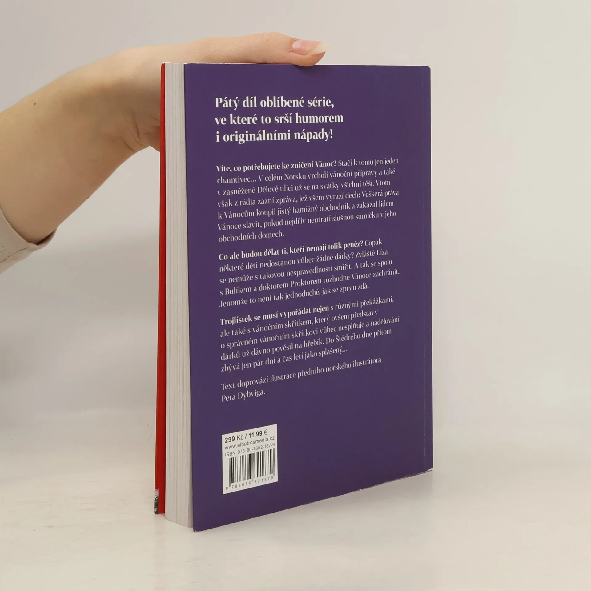 Pátý díl oblíbené série, ve které to srší humorem i originálními nápady. Víte, co potřebujete ke zničení Vánoc? Stačí k tomu jeden chamtivý obchodník, který k nim skoupí veškerá práva. A teď je nikdo nesmí slavit. Tedy pokud nejdřív neutratí slušnou sumičku v jeho obchodech. Líza, Bulík a doktor Proktor to tak nenechají. Před tím, než ale Vánoce zachrání, se musí vypořádat i s vánočním skřítkem, který nadělování dárků dávno pověsil na hřebík. Do Štědrého dne přitom zbývá jen pár dní a čas letí jako splašený… Text doprovází ilustrace předního norského ilustrátora Pera Dybviga.