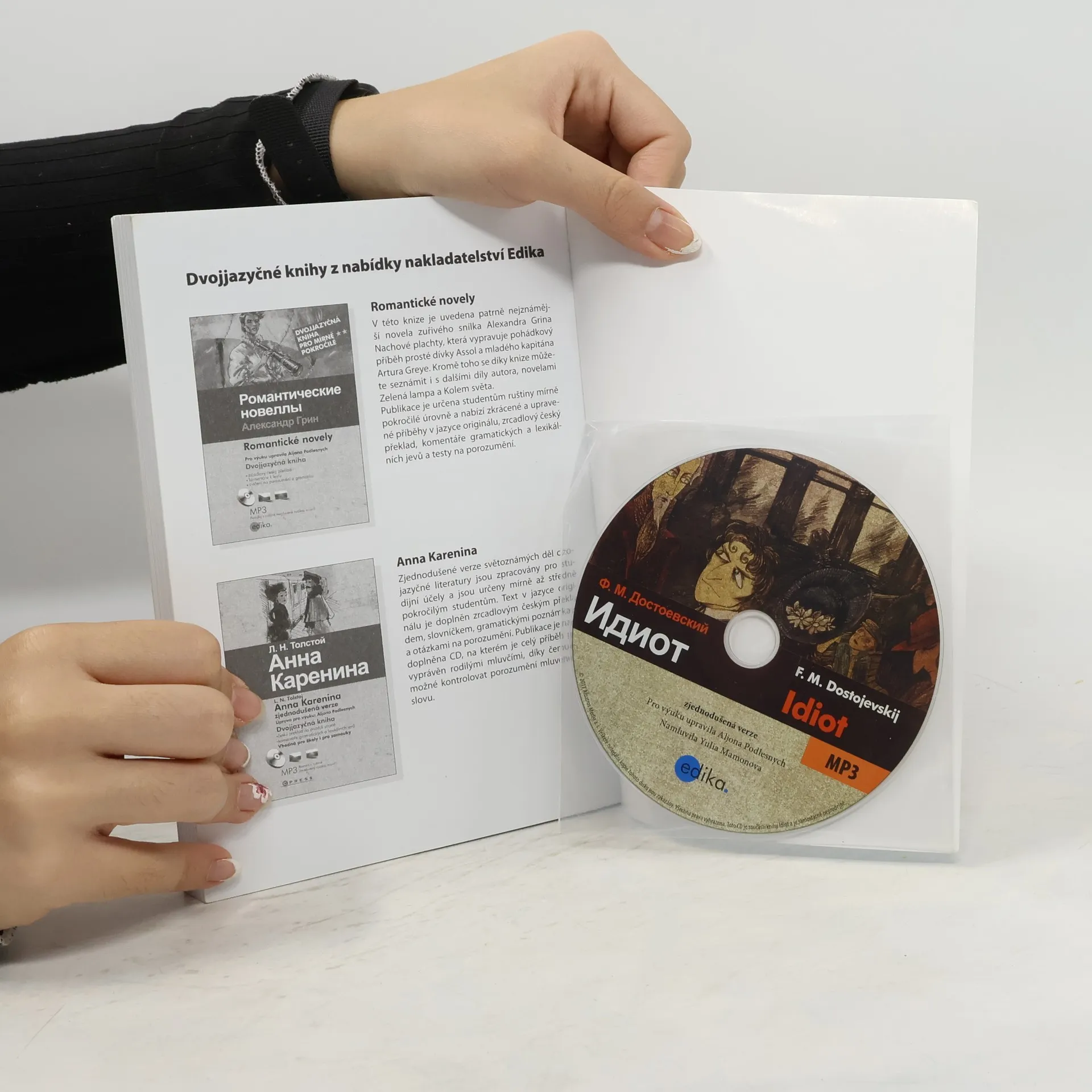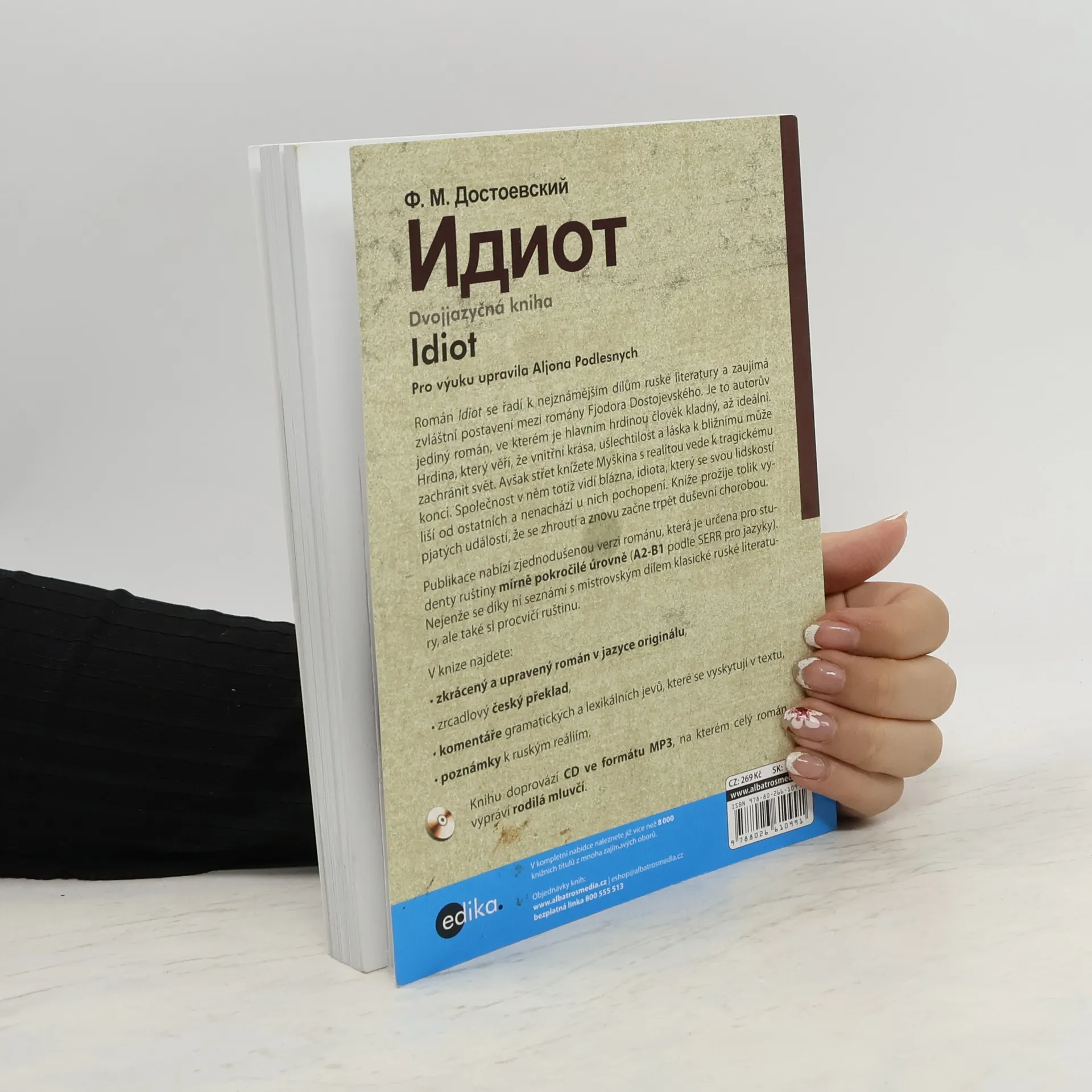 Dvojjazyčná kniha pro mírně pokročilé. Převážně souběžný ruský text. Idiot zaujímá zvláštní postavení mezi romány Fjodora Dostojevského. Je to autorův jediný román, ve kterém je hlavním hrdinou člověk kladný, až ideální. Hrdina, který věří, že vnitřní krása, ušlechtilost a láska k bližnímu může zachránit svět. Avšak střet knížete Myškina s realitou vede k tragickému konci… Publikace nabízí zjednodušenou verzi románu, která je určena pro mírně pokročilé studenty ruštiny, zrcadlový český překlad, komentáře gramatických a lexikálních jevů a poznámky k ruským reáliím.
