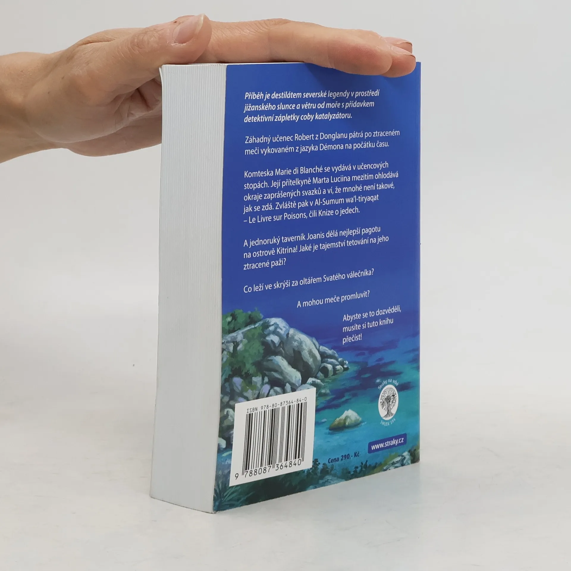 Příběh je destilátem severské legendy v prostředí jižanského slunce a větru od moře s přídavkem detektivní zápletky coby katalyzátoru. Záhadný učenec Robert z Donglanu pátrá po ztraceném meči vykovaném z jazyka Démona na počátku času. Komteska Marie di Blanché se vydává v učencových stopách. Její přítelkyně Marta Luciina mezitím ohlodává okraje zaprášených svazků a ví, že mnohé není takové, jak se zdá. Zvláště pak v Al-Sumum wa’l-tiryaqat – Le Livre sur Poisons, čili Knize o jedech. A jednoruký taverník Joanis dělá nejlepší pagotu na ostrově Kitrina! Jaké je tajemství tetování na jeho ztracené paži? Co leží ve skrýši za oltářem Svatého válečníka? A mohou meče promluvit? Abyste se to dozvěděli, musíte si tuto knihu přečíst!