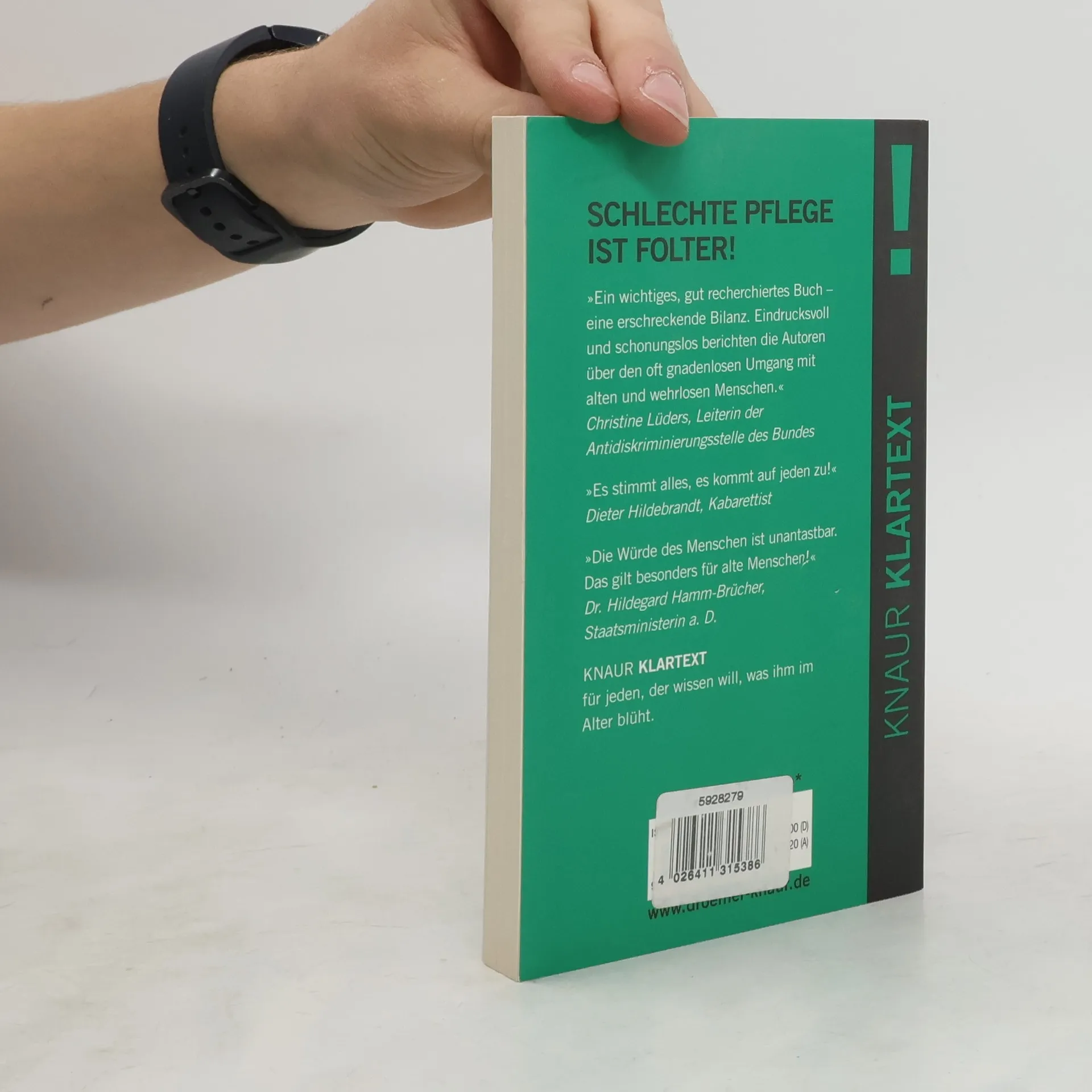 Sie werden ans Bett gefesselt, obwohl sie nicht krank sind. Sie kommen nicht an die frische Luft, obwohl das die Gesundheit fördert. Ihnen werden Windeln angelegt, obwohl sie noch auf die Toilette gehen könnten. Wie man bei uns mit pflegebedürftigen Menschen umgeht, ist ein Skandal! Claus Fussek und Gottlob Schober schildern mit schonungsloser Offenheit, wie es in deutschen Pflegeheimen zugeht. Sie fordern 20 Grundrechte für alte und pflegebedürftige Menschen ein und zählen auf, was sofort getan werden muss, um die gröbsten Missstände zu beseitigen. „Ein Aufschrei gegen ein System des Schweigens" Augsburger Allgemeine „Das Buch ist eine Streitschrift, die in den Kittel jeder Pflegerin passt, schnell durchgelesen werden kann und weitergegeben werden soll - auf dass sich viele empören.“ Süddeutsche Zeitung