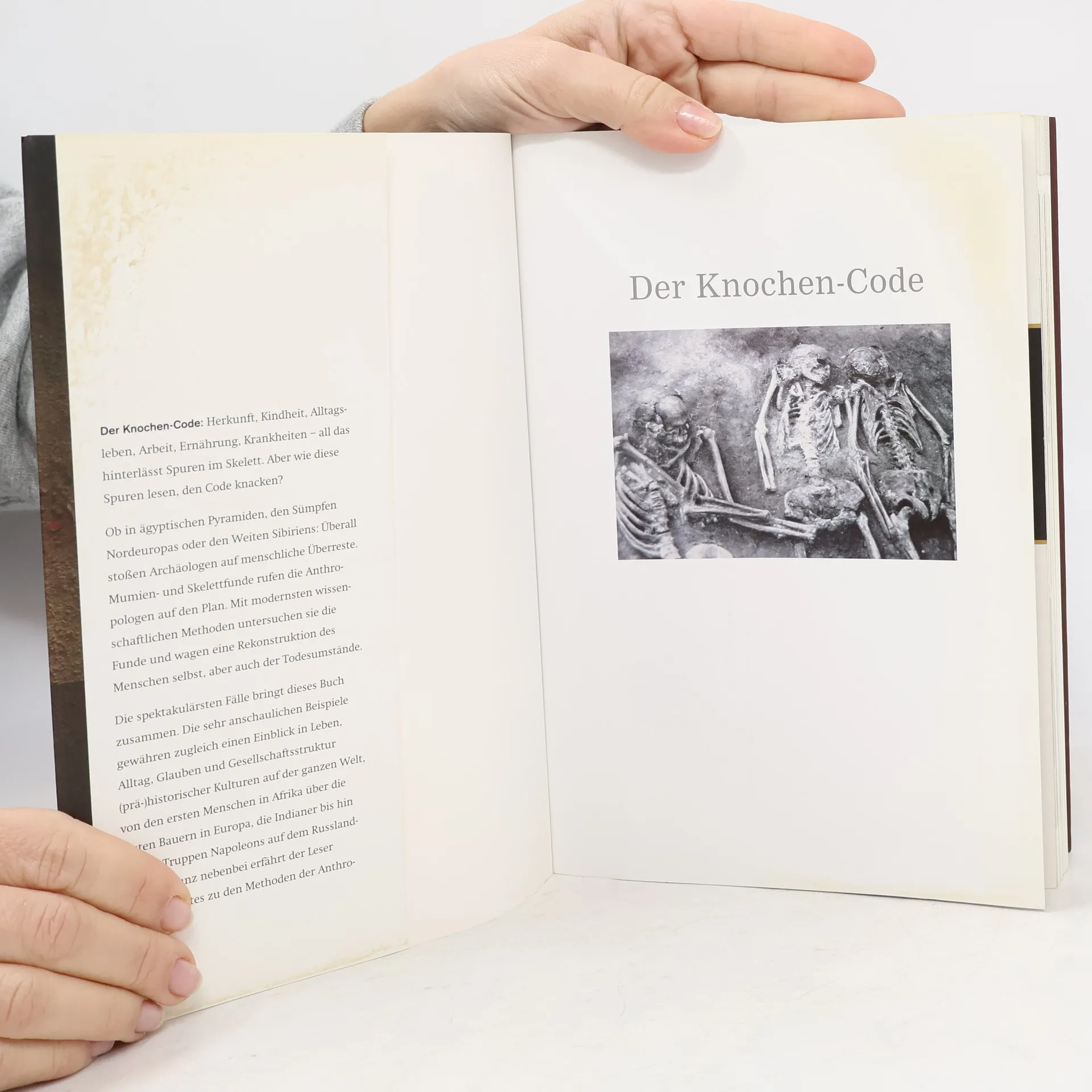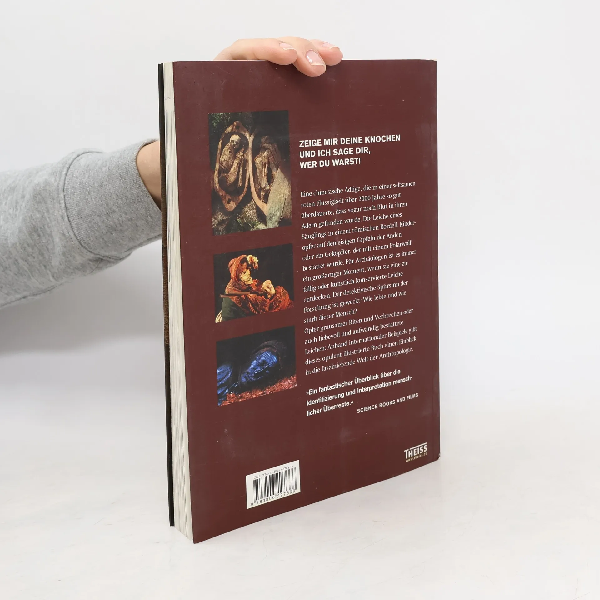Eine chinesische Adlige, die in einer seltsamen roten Flüssigkeit über 2000 Jahre so gut überdauerte, dass sogar noch Blut in ihren Adern gefunden werden konnte. Ein Säugling, der in einem römischen Bordell starb, oder Kinderopfer auf den eisigen Gipfeln der Anden. Ob in ägyptischen Pyramiden, den Sümpfen Nordwesteuropas oder den Weiten Sibiriens, es ist immer ein großartiger Moment: Die Entdeckung einer zufällig oder kunstvoll konservierten Leiche. Der detektivische Spürsinn der Forscher ist geweckt. Wie lebte und starb dieser Mensch? Herkunft, Alltagsleben, Arbeit, Ernährung und Krankheiten hinterlassen Spuren auf dem Skelett. Die Opfer grausamer Riten und Verbrechen oder auch liebevoll und aufwändig bestattete Leichen erzählen dank neuester wissenschaftlicher Methoden tragische, grausame oder auch anrührende Geschichten – von den Anfängen der Menschheit bis ins 19. Jahrhundert.
