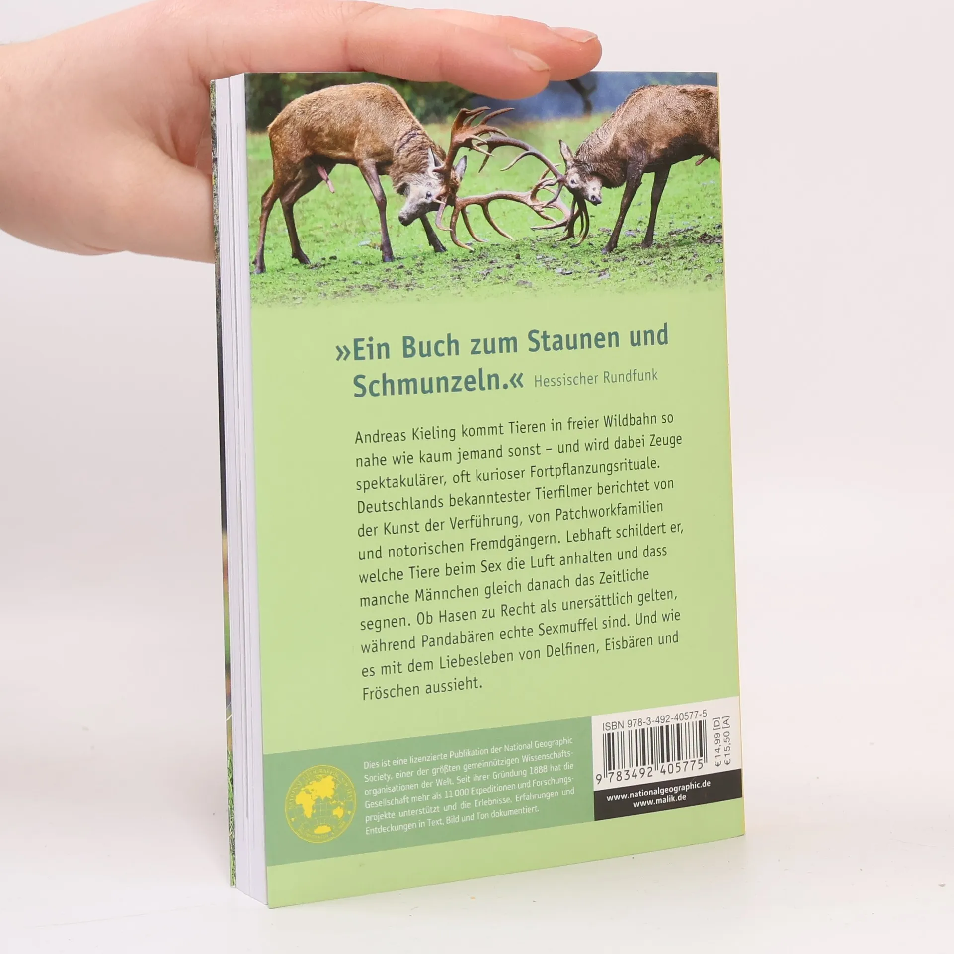 Niemand kommt Tieren in freier Wildbahn näher als Andreas Kieling – und wird dabei Zeuge spektakulärer, oft kurioser Fortpflanzungsrituale. Er berichtet von Patchworkfamilien und von notorischen Fremdgängern; welche Tiere beim Sex die Luft anhalten und wo die Männchen gleich danach das Zeitliche segnen. Welche Tiere monogam leben und welche lieber einen Harem um sich scharen. Ob es im Tierreich Familienplanung oder Eifersucht gibt. Und ob Hasen zu Recht als unersättlich gelten, während Pandabären echte Sexmuffel sind.