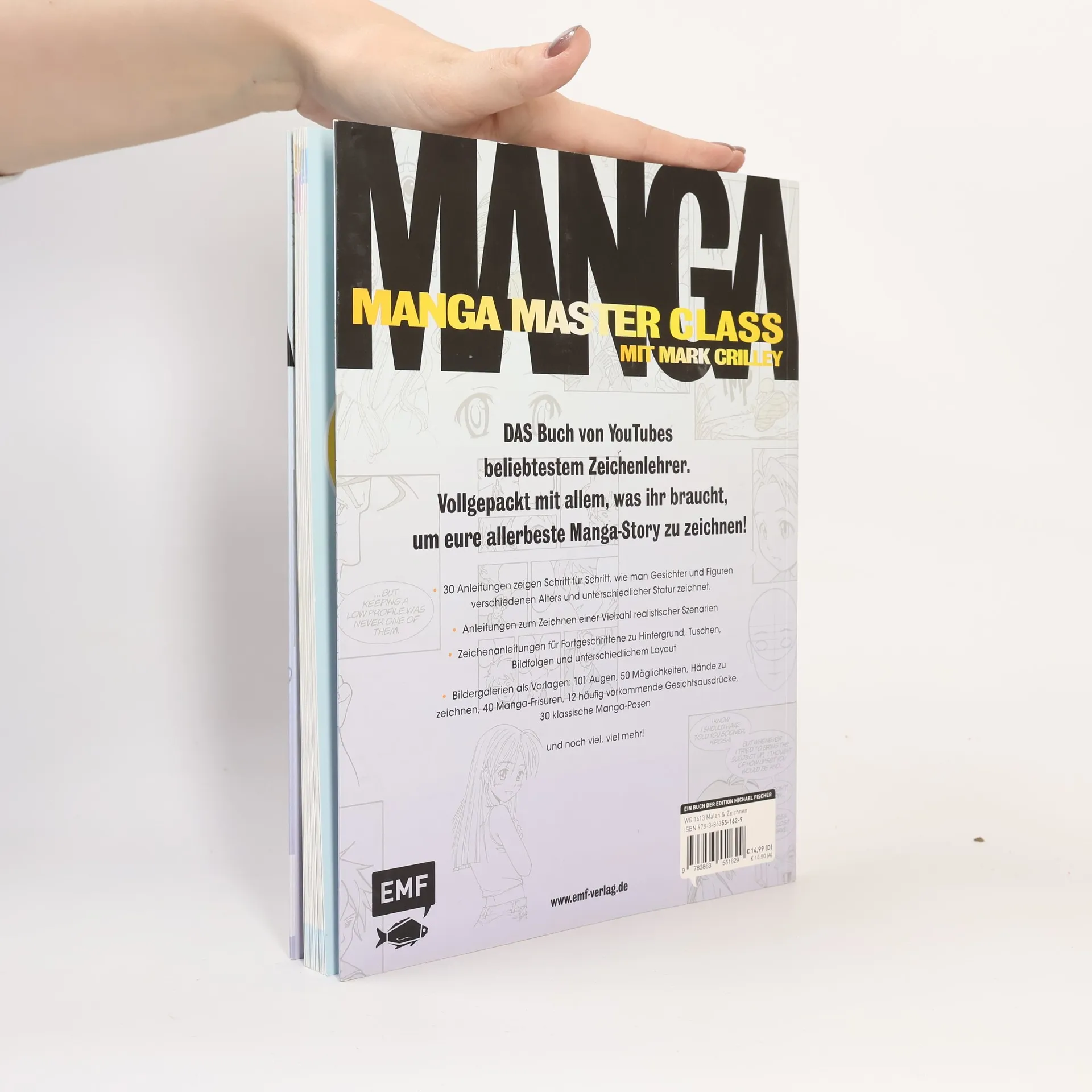 Manga ist so viel mehr als niedliche Figuren! Der beliebte Manga-Profi Mark Crilley verrät die Tricks, wie man seinen eigenen Manga-Stil findet – vom Zeichnen der Gesichter und der Charaktere bis hin zum Layout dramatischer Szenarien. Alles wird in der freundlichen und leicht verständlichen Art vorgestellt, die Mark Crilley zu einem der „25 Most Subscribed to Gurus on YouTube“ gemacht hat. Natürlich gibt Crilley auch jede Menge nützliche Tipps zu Ausdruck, Haltung und Action, immer in übersichtliche Schritt-für-Schritt-Anleitungen unterteilt.