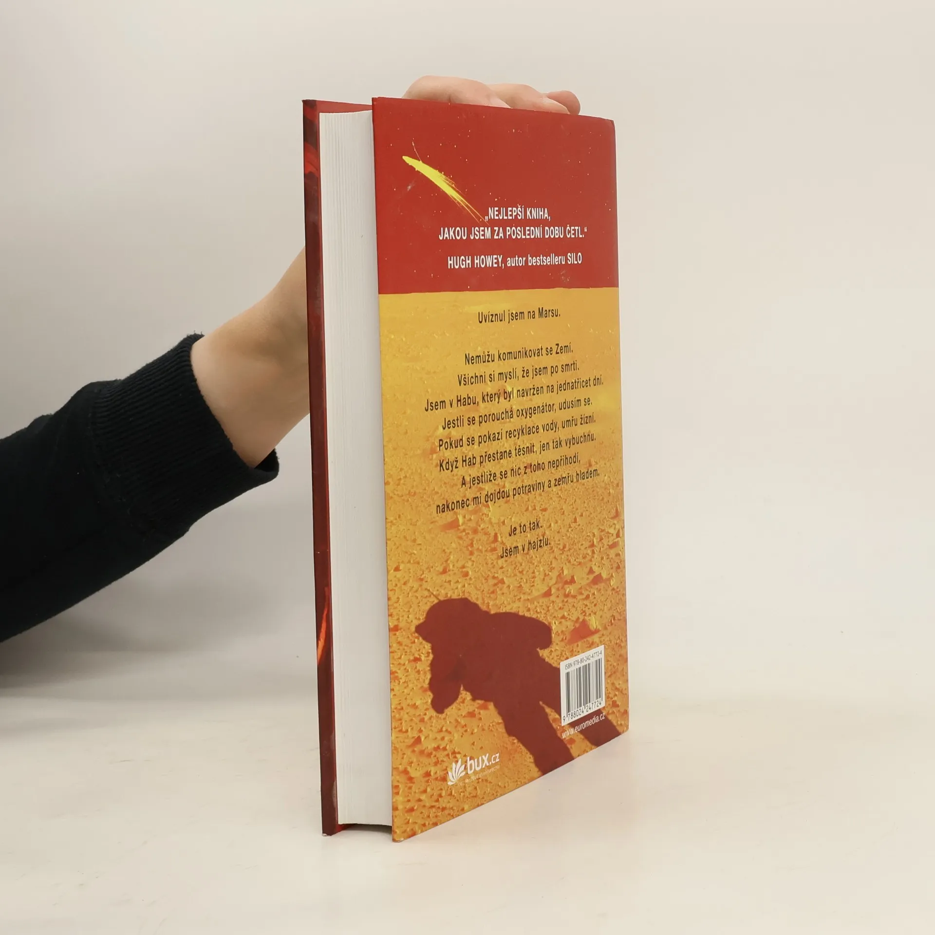 Je nejslavnějším mužem na Zemi. Má to však háček: není na Zemi… Před šesti dny se Mark Watney jako jeden z prvních lidí prošel po Marsu. Teď je přesvědčený, že bude prvním člověkem, který tam zemře. Málem zahynul v prašné bouři a zbytek jeho posádky odletěl v domnění, že je mrtvý. Mark nemá jak odeslat zprávu, že přežil. A i kdyby se s lidmi na Zemi spojit dokázal, zásoby mu dojdou mnohem dřív, než by stačila dorazit pomoc. Mark se však nevzdává. Vyzbrojen pouze svým důvtipem, technickými dovednostmi a nevyčerpatelným smyslem pro humor, který se pro něj stane nejcennějším zdrojem síly, se pouští do tvrdošíjného boje o přežití. Jak zdolává jednu zdánlivě nepřekonatelnou překážku za druhou, začíná věřit, že by na cizí planetě přece jen mohl obstát. Jenže Mars mu ještě přichystá nejedno překvapení… Strhující, podmanivý a přesvědčivý příběh o lidské nezdolnosti a vynalézavosti tváří v tvář beznadějné situaci obletěl celý čtenářský svět a ve všech zemích, kde vychází, sklízí nadšený ohlas. Zaujal i filmové tvůrce, režisér Ridley Scott točí adaptaci s Mattem Damonem v hlavní roli.