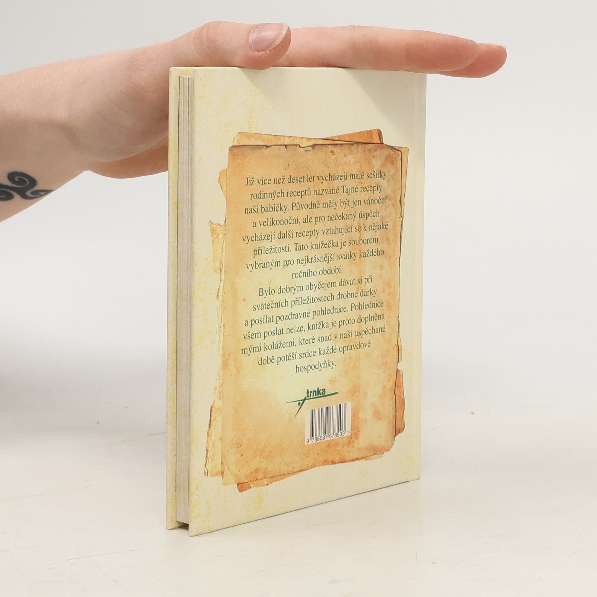 Již více než deset let vycházejí malé sešitky rodinných receptů nazvané Tajné recepty naší babičky. Původně měly být jen vánoční a velikonoční, ale pro nečekaný úspěch vycházejí další recepty vztahující se k nějaké příležitosti. Tato knížečka je souborem vybraným pro nejkrásnější svátky každého ročního období. Bylo dobrým obyčejem dávat si při svátečních příležitostech drobné dárky a posílat pozdravné pohlednice. Pohlednice všem poslat nelze, je tedy knížka doplněna mými kolážemi, které v naší uspěchané době snad potěší srdce opravdové hospodyňky. Nechť vám roste a vzkvétá váš pracovní i osobní život a vaše slavnostní chvíle se vydaří.