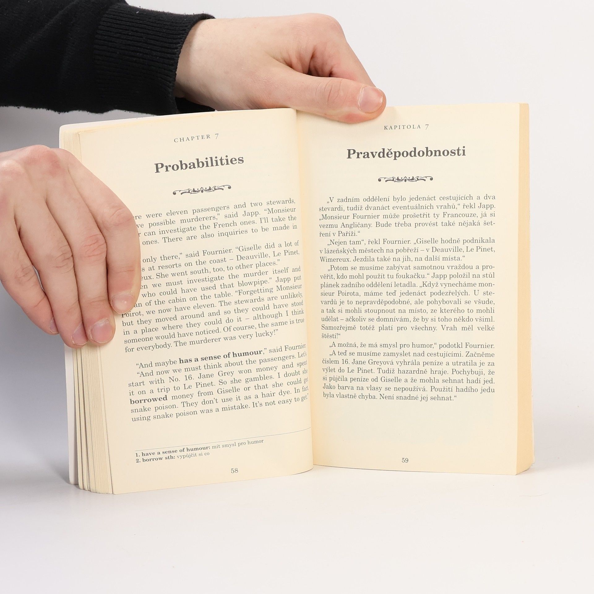 Podle příběhu Agathy Christie. Souběžný český text. Určeno pro mírně pokročilé. Hercule Poirot cestuje letadlem z Paříže do Londýna. Společně s dalšími deseti pasažéry sdílí kabinu letadla Prometheus a zdá se, že jeho pozorovatelským schopnostem jen tak něco neunikne, byť se neděje nic neobvyklého – až na nepříjemnost s vosou. Opak je však pravdou – v půli cesty stevard zjistí, že jedna z cestujících je mrtvá. Nehodu vyloučí vzápětí sám Poirot, když na podlaze najde foukací šipku. Vražednou zbraň však policie objeví tam, kde by to nikdy nečekala – pod sedadlem slavného Belgičana! Poirotovi nezbývá než očistit své jméno a dopadnout pachatele zločinu, jejž nikdo neviděl a přece se odehrál před zraky několika párů očí včetně těch nejslavnějšího detektiva všech dob.