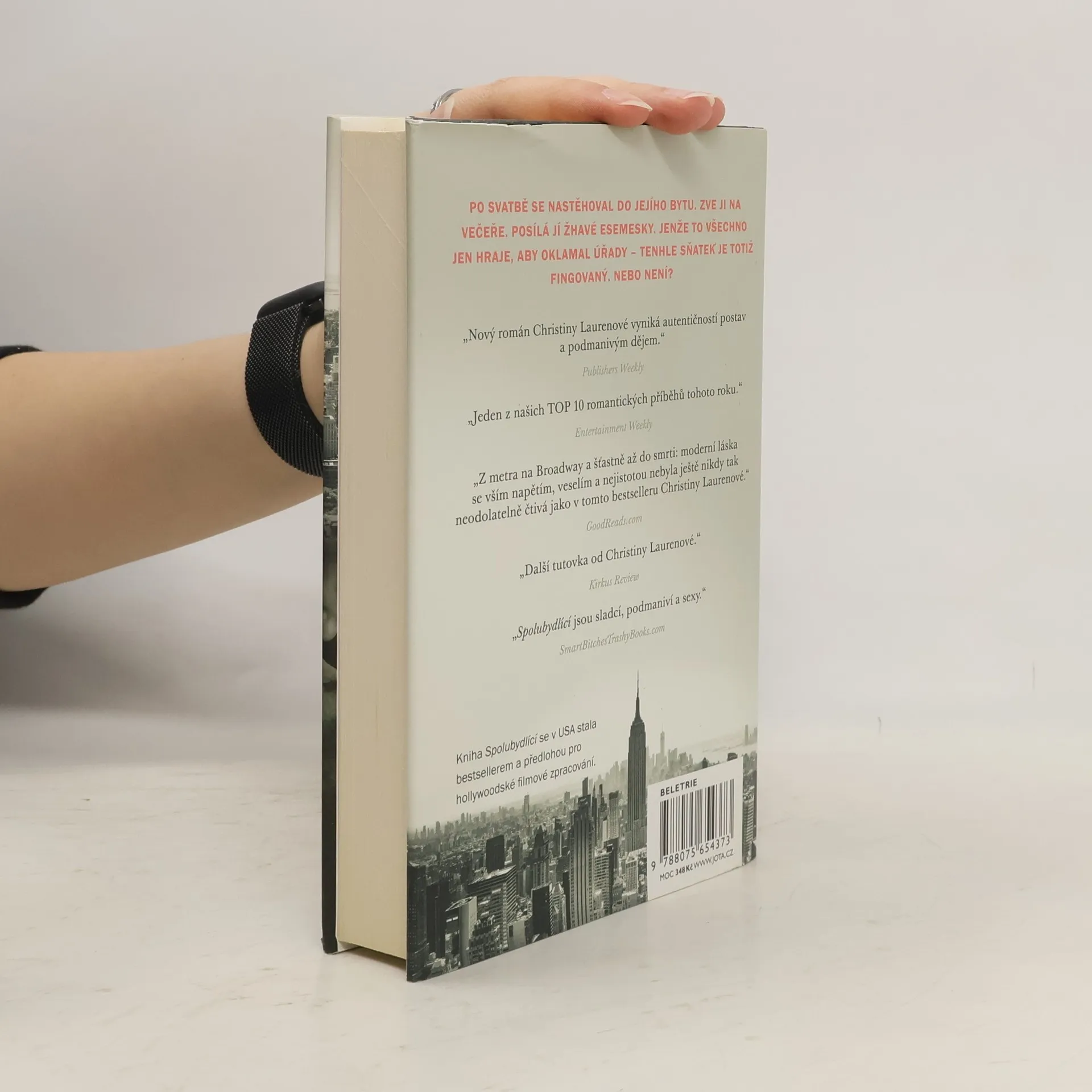 Když svatbou vztah nekončí, ale teprve začíná… Holland Bakkerová má byteček na Manhattanu, nenáročnou asistentskou práci v divadle a touhu stát se spisovatelkou. Už šest měsíců ale nenapsala ani řádku. Místo toho den co den postává ve stanici metra na Padesáté ulici a dychtivě poslouchá, když hraje On. Calvin, chlap s těma nejuhrančivějšíma zelenýma očima, neodolatelným irským přízvukem a ďábelskými prsty na strunách kytary. Právě takového sólistu by nutně potřebovali v divadle, které vede Hollandin strýc. Jenže to má drobný háček: Calvin je ve Státech už pár let nelegálně. Nenašla by se nějaká cesta, jak pro něj získat povolení k pobytu? Co třeba fingovaný sňatek? Christina Laurenová – je vůbec třeba něco dodávat? Přichází další romantický i zábavný příběh nejen pro čtenářky, které si oblíbily románové série Vášnivý a Božský. Tentokrát společně nakoukneme do oslnivého světa muzikálových divadel na Broadwayi, ale i do newyorských ulic, barů a samozřejmě také do ložnice hlavních hrdinů. Kniha Spolubydlící se v USA stala bestsellerem a předlohou pro hollywoodské filmové zpracování.