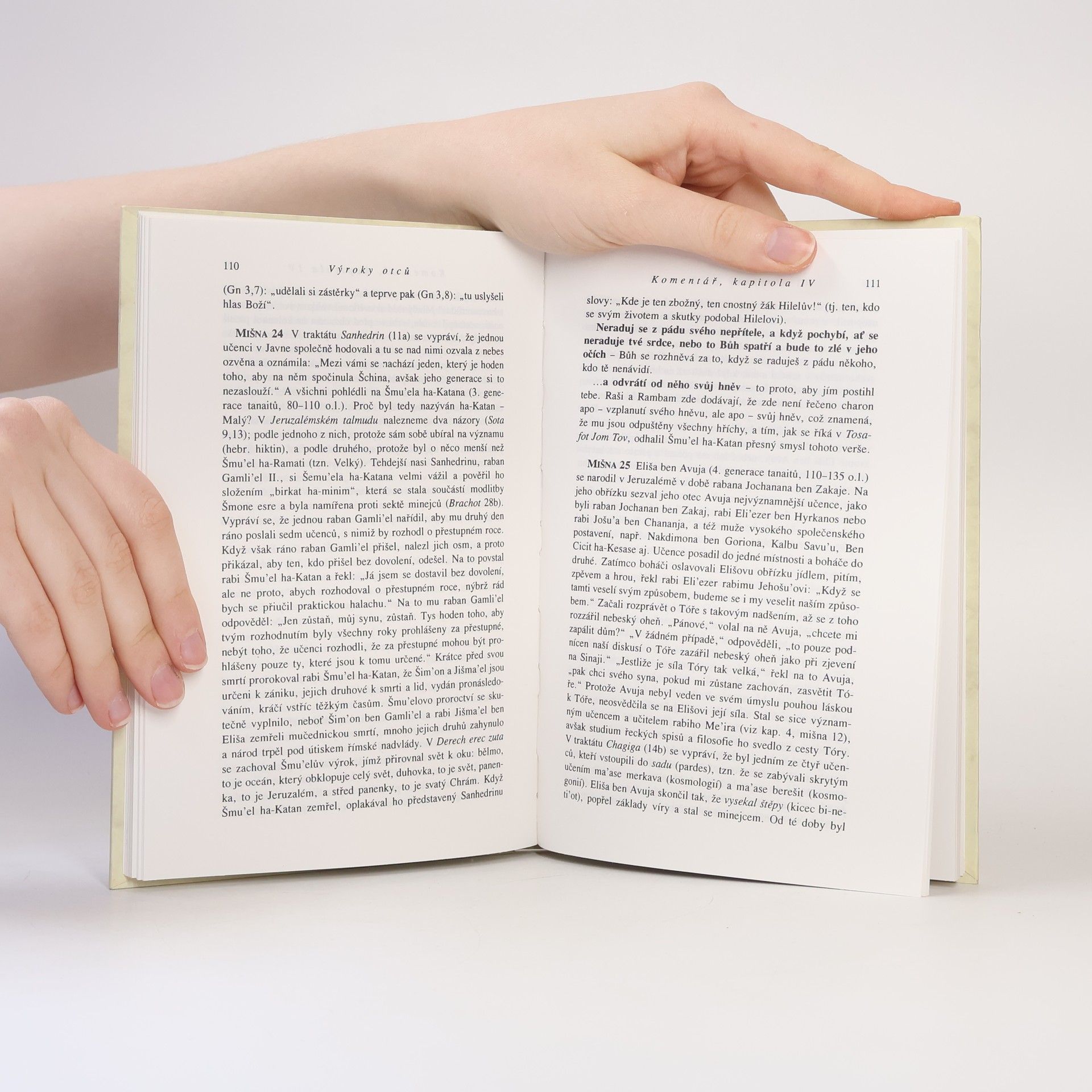 Traktát Babylónského talmudu s paralelním českým překladem a komentářem Známý traktát, nazýván také Pirkej avot (Výroky otců), ovšem slovo avot může znamenat i základní principy, z nichž se pak odvozují všechny ostatní. Obsahuje základní morální stanoviska a výroky slavných učitelů, kteří se stali články tradice, předané Mojžíšem Jozuovi přes proroky až k rabínským autoritám.... celý text