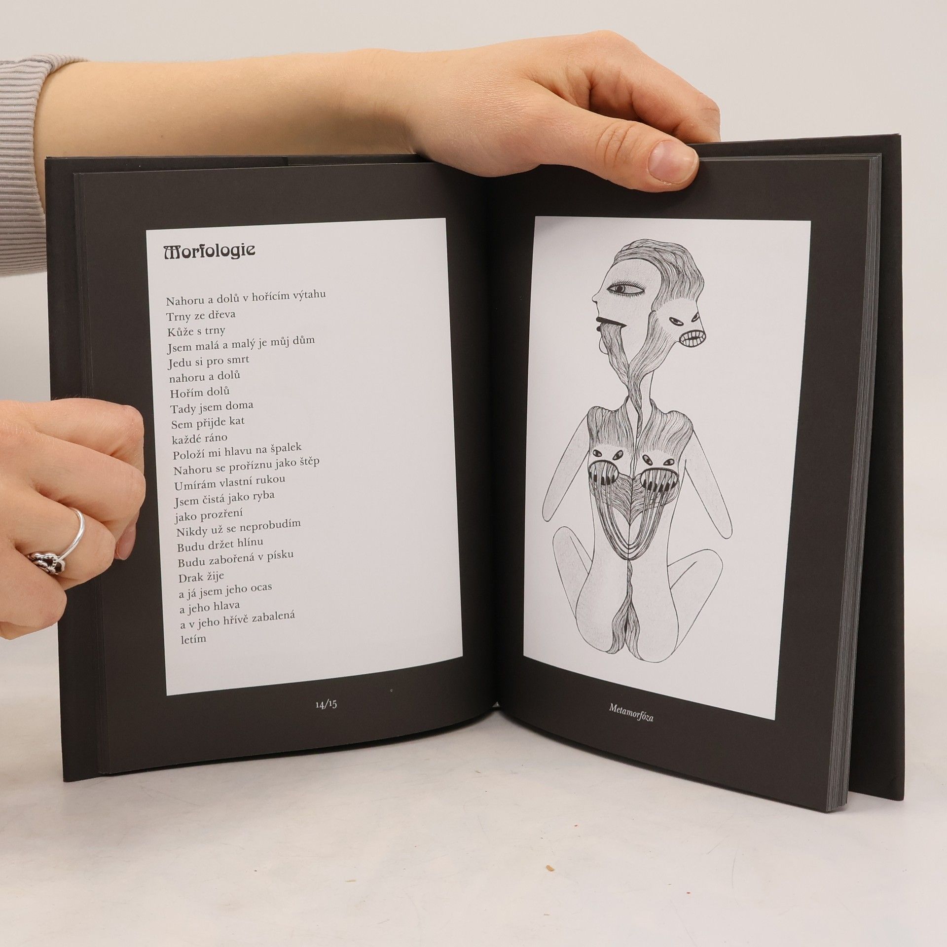 Sbírka básní Kateřiny Piňosové v edici Druhá řada edice Analogonu přináší hluboké zamyšlení nad skutečností a jejími skrytými zázraky. Básnířka vnímá svou tvorbu jako snahu odstranit překážky, které brání lidem vidět a cítit realitu. Podle ní stačí „zbystřit smysly natolik, aby se člověk mohl skutečnosti dotknout a objevoval v ní zázračno“. Zázračno chápe jako energii, která spojuje věci a souvislosti, čímž přesahuje rozumové vnímání světa. Tvorba pro ni představuje magii, přičemž odhalení magie ukazuje, že vše, co objevujeme, již existuje kolem nás. Skutečnost ohromuje svou mnohotvárností a člověk musí „otevřít něco ve svém nitru, jako kdyby aktivoval svou sopku“, aby mohl portrétovat to, co je, včetně přízraků a vidin. Kateřina Piňosová, narozená 30. listopadu 1973, je členkou Skupiny česko-slovenských surrealistů a věnuje se verbální i vizuální tvorbě. Je autorkou několika publikací, včetně sbírky Housenka smrtihlava a Vnitřní cestopis. Její díla byla publikována doma i v zahraničí a ilustrovala řadu publikací.