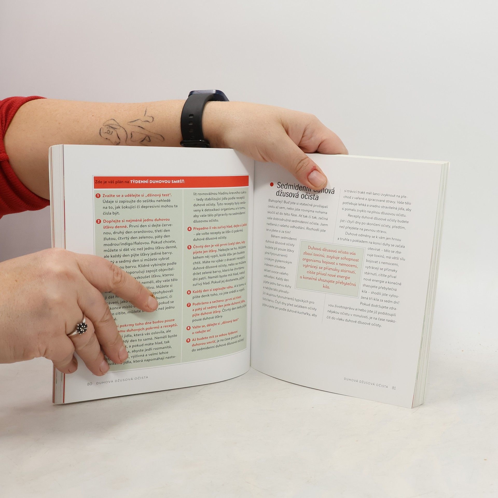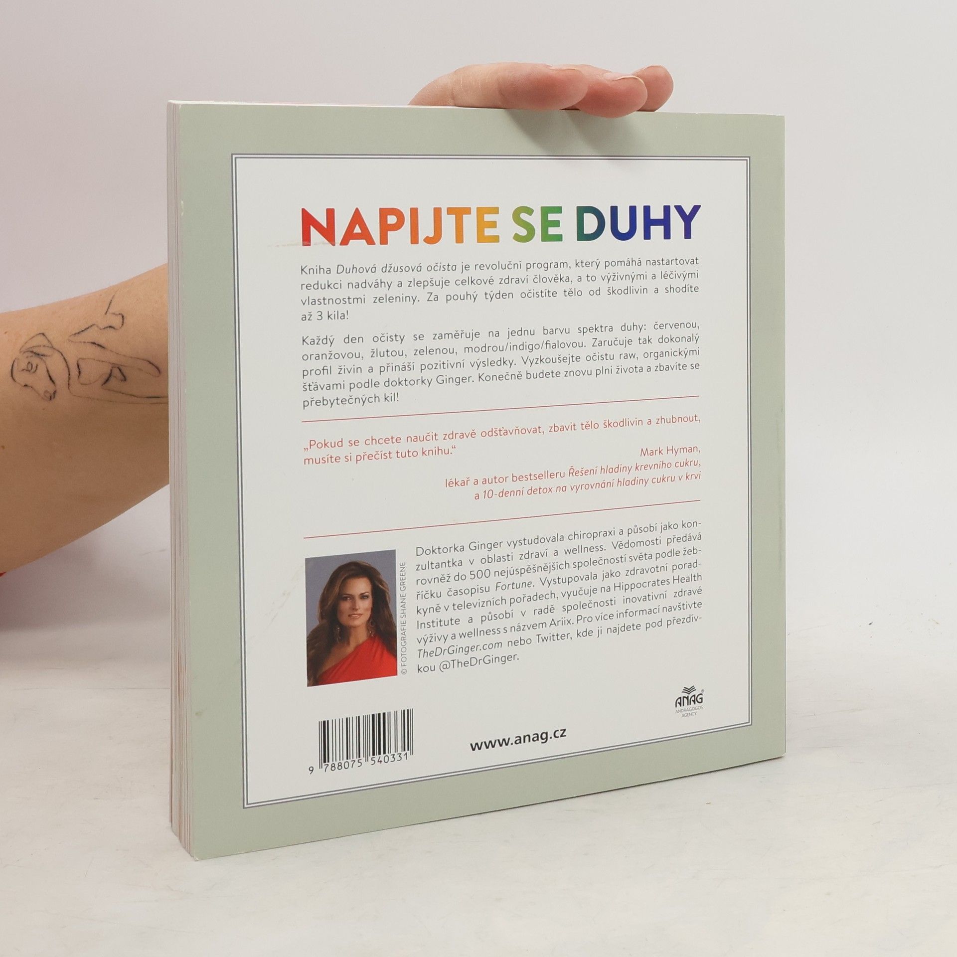 Pijte duhové ovocné nápoje a budete zdravější! Kniha doktorky Ginger Southall, která je v Americe známá jako "Dr. Ginger", nabízí zcela nový pohled na ovocné šťávy, které jsou čím dál populárnější u vyznavačů zdravého životního stylu. Dr. Ginger ukazuje čtenářům, jak "pití duhy" – červené, oranžové, žluté, zelené, modré, indigo a fialové čerstvé organické šťávy pomůže při hubnutí, proti stárnutí, k získání energie a celkové rovnováze těla. Díky tomuto inovativnímu a revolučnímu odšťavňovacímu programu se čtenáři nastartují pro zhubnutí a zlepšení zdraví pomocí pití 7 barevných nápojů za 7 dnů a zhubnou až 7 kg. Duhová džusová očista je seznámí se správnými metodami odšťavňování, odhalí mylné představy o detoxikaci a naučí je, jak se vyhnout běžným chybám při odšťavňování počítáním barev, ne kalorií.