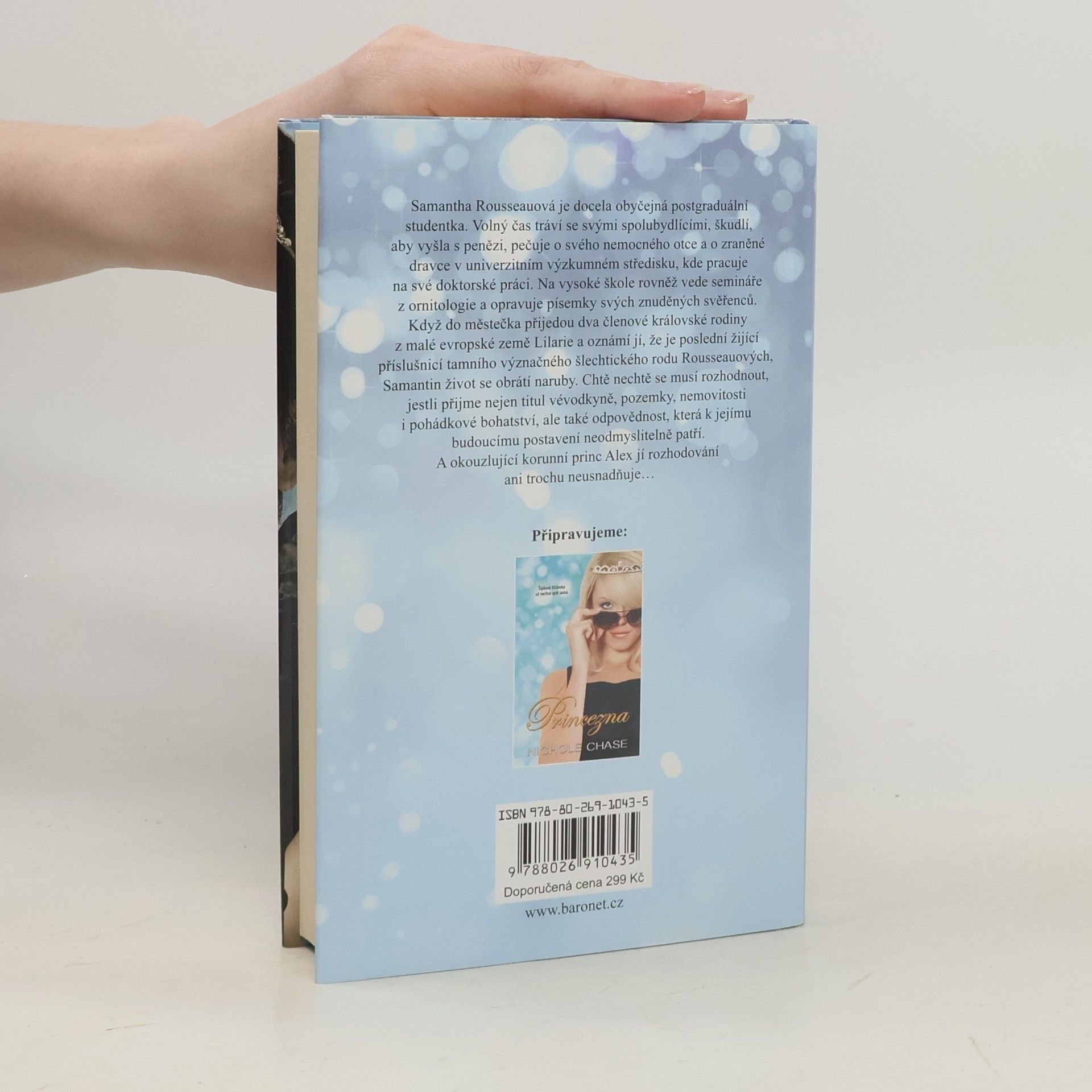Samantha Rousseauová je docela obyčejná postgraduální studentka. Volný čas tráví se svými spolubydlícími, škudlí, aby vyšla s penězi, pečuje o svého nemocného otce a o zraněné dravce v univerzitním výzkumném středisku, kde pracuje, na vysoké škole přednáší ornitologii a opravuje písemky a testy svých znuděných svěřenců. Když do městečka přijedou dva členové královské rodiny z malé evropské země Lilarie a oznámí jí, že je poslední žijící příslušnicí tamního šlechtického rodu Rousseauových, Samanthin život se obrátí naruby. Chtě nechtě se musí rozhodnout, jestli přijme nejen titul vévodkyně, pozemky, nemovitosti i pohádkové bohatství, ale také odpovědnost, která k jejímu budoucímu postavení neodmyslitelně patří. A okouzlující korunní princ Alex jí rozhodování ani trochu neusnadňuje…