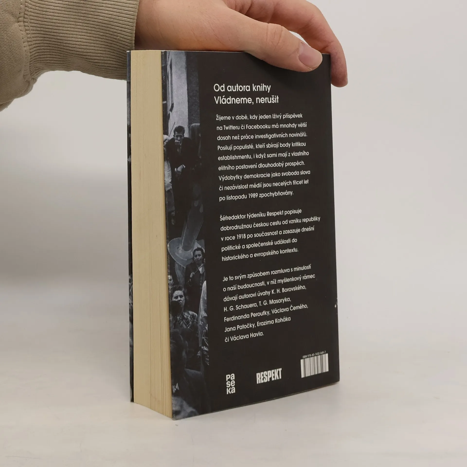 Česká cesta od Masaryka k Babišovi. Žijeme v době, kdy jeden lživý příspěvek na Twitteru či Facebooku má větší dosah než systematická práce investigativních novinářů. Posilují populisté, kteří sbírají body kritikou establishmentu, i když sami mají z vlastního elitního postavení dlouhodobý prospěch. Výdobytky demokracie jako svoboda slova či nezávislost médií jsou necelých třicet let po listopadu 1989 zpochybňovány. Šéfredaktor týdeníku Respekt popisuje dobrodružnou českou cestu od vzniku republiky po současnost a zasazuje dnešní politické a společenské události do historického a evropského kontextu. Je to svým způsobem rozmluva s minulostí o naší budoucnosti, v níž myšlenkový rámec dávají autorovi úvahy K. H. Borovského, H. G. Schauera, T. G. Masaryka, Ferdinanda Peroutky, Václava Černého, Jana Patočky, Erazima Koháka či Václava Havla. S odkazem na velké kritické duchy demokratické tradice Tabery jasně ukazuje, že rizikům přítomnosti se nejlépe čelí nikoliv panikou, ale chladnou hlavou a rozhodností.