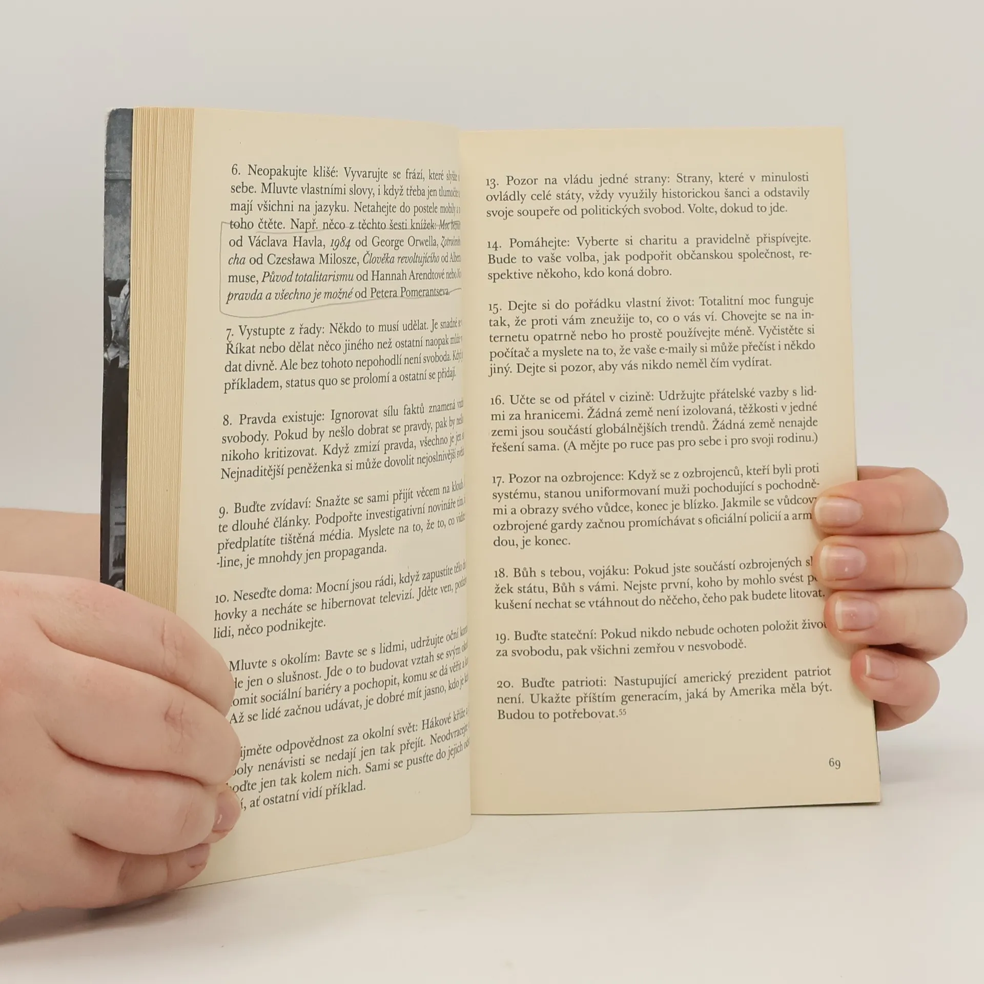 Česká cesta od Masaryka k Babišovi. Žijeme v době, kdy jeden lživý příspěvek na Twitteru či Facebooku má větší dosah než systematická práce investigativních novinářů. Posilují populisté, kteří sbírají body kritikou establishmentu, i když sami mají z vlastního elitního postavení dlouhodobý prospěch. Výdobytky demokracie jako svoboda slova či nezávislost médií jsou necelých třicet let po listopadu 1989 zpochybňovány. Šéfredaktor týdeníku Respekt popisuje dobrodružnou českou cestu od vzniku republiky po současnost a zasazuje dnešní politické a společenské události do historického a evropského kontextu. Je to svým způsobem rozmluva s minulostí o naší budoucnosti, v níž myšlenkový rámec dávají autorovi úvahy K. H. Borovského, H. G. Schauera, T. G. Masaryka, Ferdinanda Peroutky, Václava Černého, Jana Patočky, Erazima Koháka či Václava Havla. S odkazem na velké kritické duchy demokratické tradice Tabery jasně ukazuje, že rizikům přítomnosti se nejlépe čelí nikoliv panikou, ale chladnou hlavou a rozhodností.
