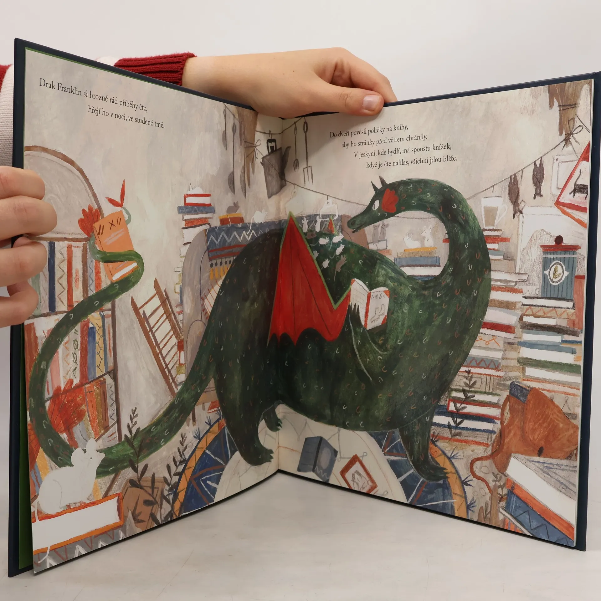 Pohádkový příběh, který v dětech probudí lásku ke knihám. Drak Franklin zbožňuje knížky a rád z nich předčítá svým kamarádům. Problém je, že obyvatelé blízké vesnice se ho poněkud bojí. Naštěstí najde spřízněnou duši v Luně, holčičce, která miluje knihy stejně jako on. Společně vymyslí, že si otevřou knihovnu. A ne ledajakou, ale létající a přímo na Franklinových zádech!
