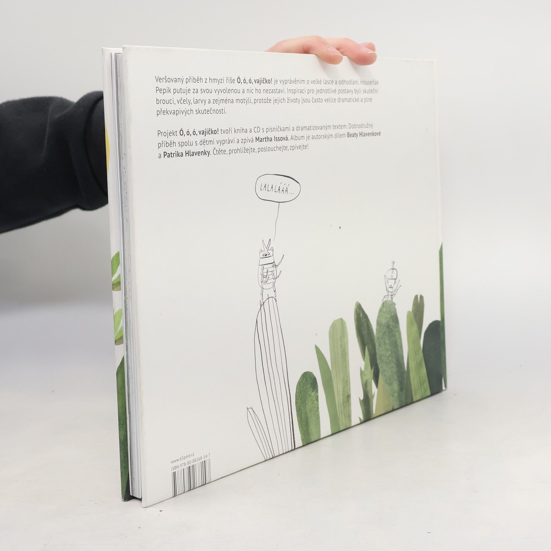 Veršovaný příběh z hmyzí říše Ó, ó, ó, vajíčko! je vyprávěním o velké lásce a odhodlání. Houseňák Pepík putuje za svou vyvolenou a nic ho nezastaví. Inspirací pro jednotlivé postavy byli skuteční brouci, včely, larvy a zejména motýli, protože jejich životy jsou často velice dramatické a plné překvapivých skutečností. Dobrodružný příběh spolu s dětmi vypráví a zpívá Martha Issová. Album je autorským dílem Beaty Hlavenkové a Patrika Hlavenky. Čtěte, prohlížejte, poslouchejte, zpívejte!