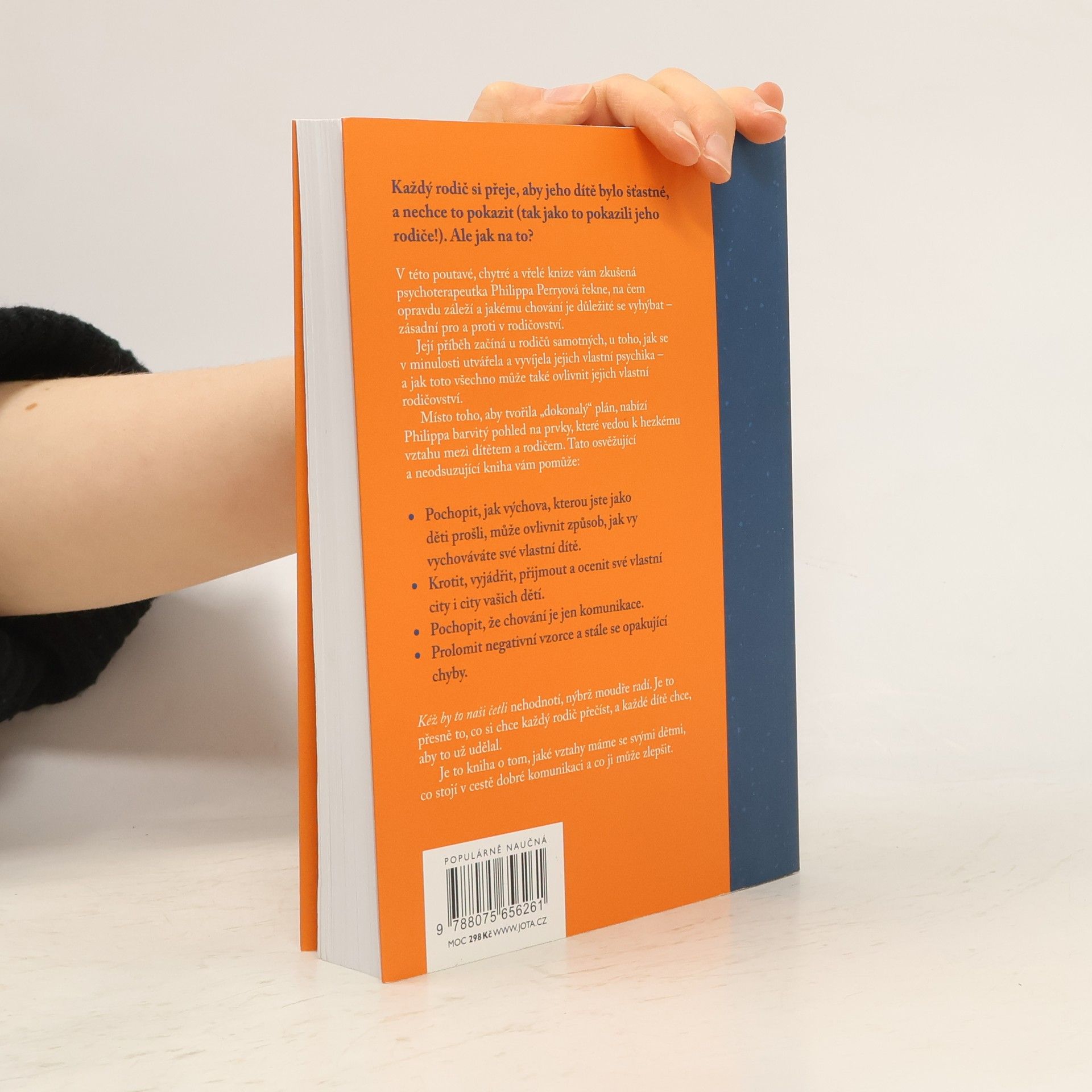 Kniha pro každého rodiče. Každý rodič touží po štěstí svého dítěte a nechce opakovat chyby svých vlastních rodičů. Jak ale na to? Zkušená psychoterapeutka Philippa Perryová v této poutavé a vřelé knize objasňuje, na čem skutečně záleží a jakému chování se vyhnout – klíčové pro a proti v rodičovství. Začíná u rodičů a jejich vlastní psychiky, která ovlivňuje jejich přístup k výchově. Místo „dokonalého“ plánu nabízí pohled na prvky, které vedou k hezkému vztahu mezi dítětem a rodičem. Tato osvěžující kniha vám pomůže: - Pochopit, jak vaše vlastní dětství ovlivňuje vaši výchovu. - Krotit, vyjádřit a ocenit své i dětské city. - Vidět chování jako formu komunikace. - Prolomit negativní vzorce a opakující se chyby. Kniha, která nehodnotí, ale moudře radí, je přesně tím, co si každý rodič přeje a co by mělo být čteno. Zaměřuje se na vztahy mezi rodiči a dětmi, na překážky dobré komunikace a na možnosti jejího zlepšení. I když téměř každý rodič miluje své dítě, díky radám a krokům z této knihy objevíte, jak jste navzájem propojeni.