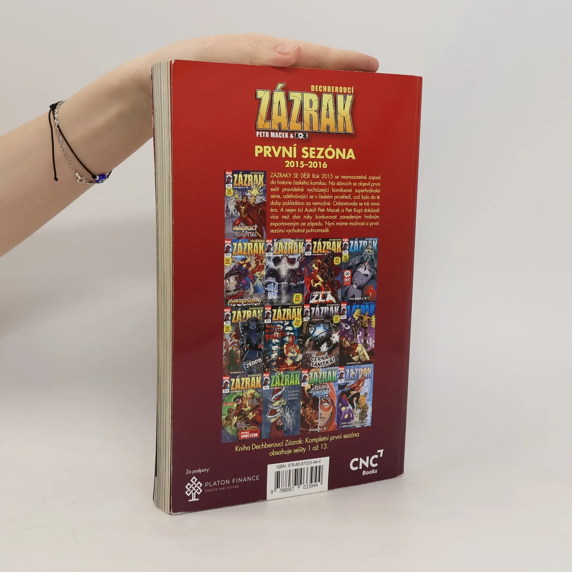 ZÁZRAKY SE DĚJÍ! Rok 2015 se nesmazatelně zapsal do historie českého komiksu. Na stáncích se objevil první sešit pravidelně vycházející komiksové superhrdinské série, odehrávající se v českém prostředí, což bylo do té doby pokládáno za nemožné. Odstartovala se tak nová éra. A nejen to! Autoři Petr Macek a Petr Kopl dokázali více než dva roky konkurovat zavedeným hrdinům exportovaným ze západu. Nyní máme možnost si první sezónu vychutnat pohromadě. Při pokusu odčerpat pomocí moderní technologie tajemnou energii z prastarého golema došlo v Národním muzeu k nehodě. Mladý student David Daneš, který se k incidentu připletl, byl při explozi vystaven neznámému záření, jež mu dodalo nečekané schopnosti. Jaké přesně a na jakém principu fungují, teprve poznává. Protože se ale postavil na stranu práva a pořádku, pro veřejnost je teď superhrdina: ZÁZRAK!