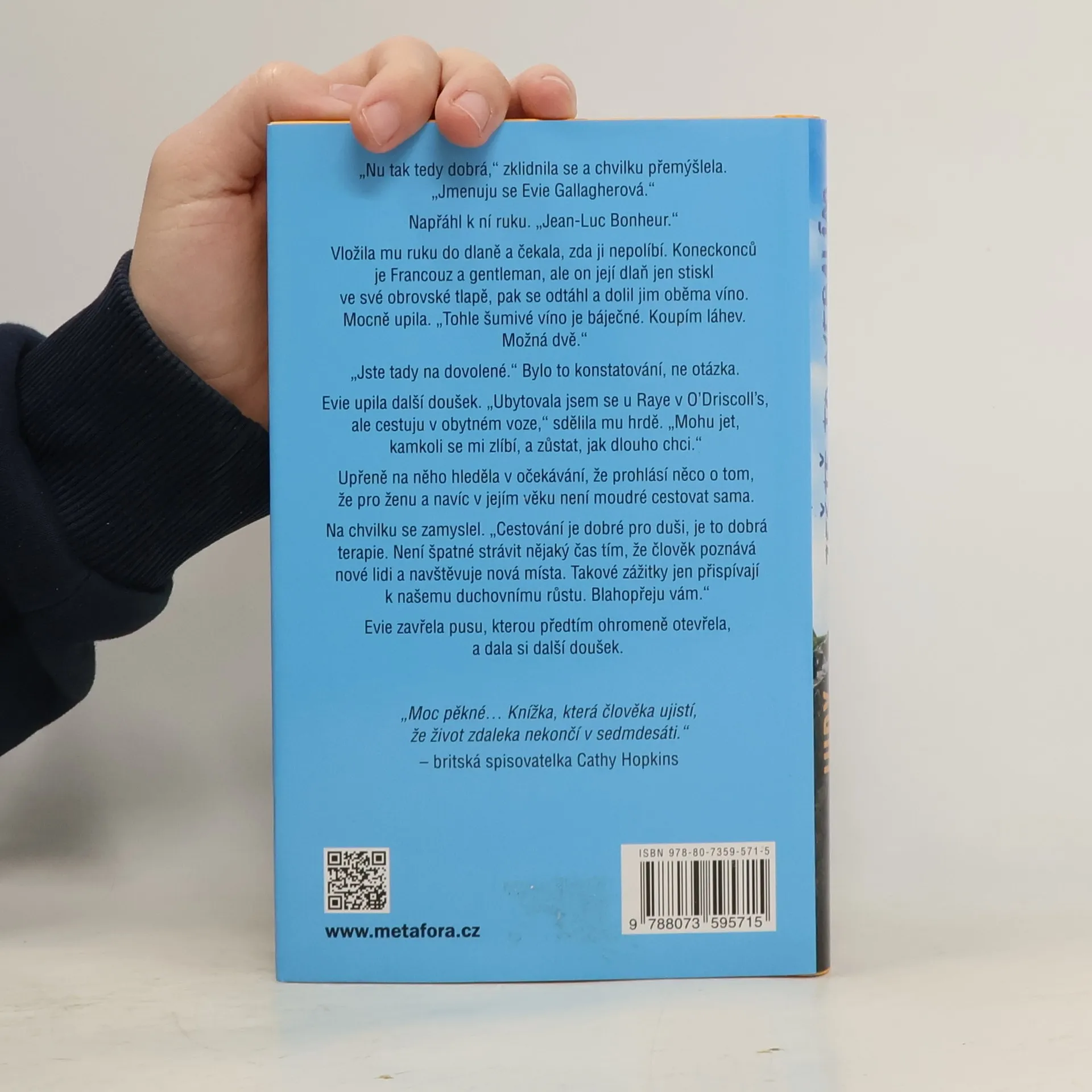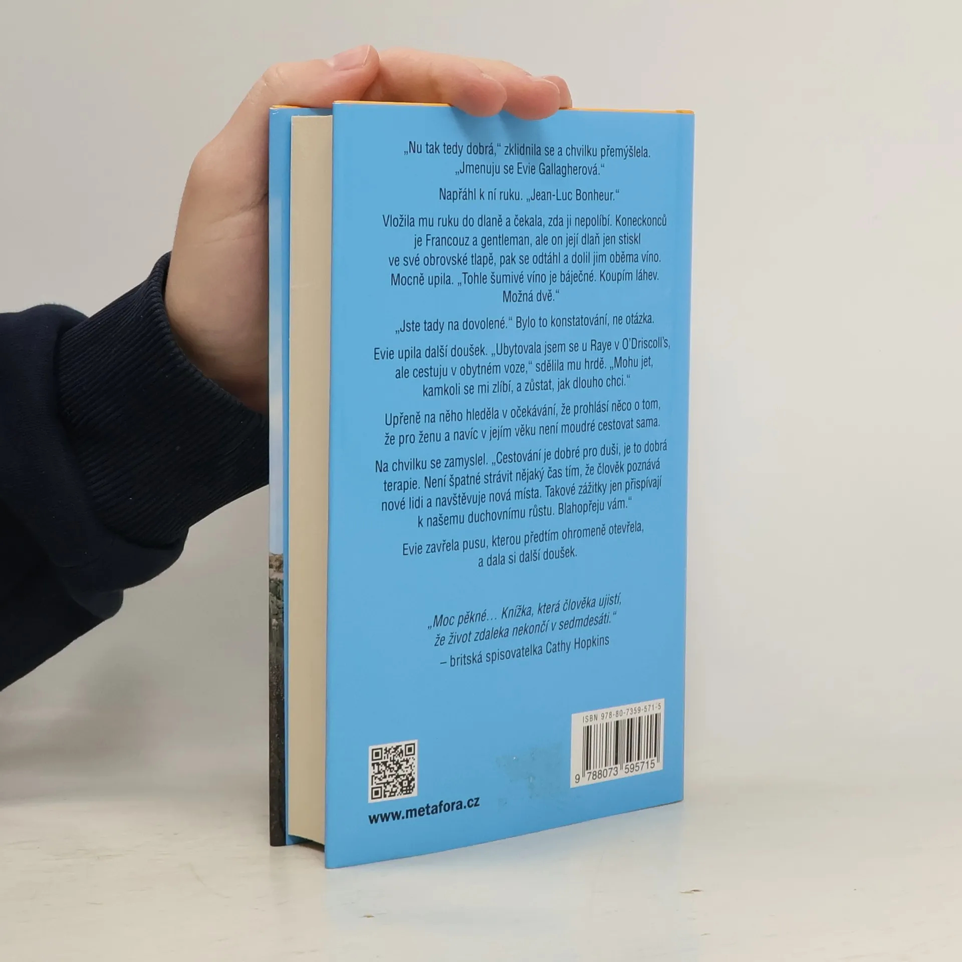 75 na krku, 25 v hlavě. „Život začíná po pětasedmdesátce“ Humorný román o útěku z domova důchodců a nekončící chuti žít potěší zejména fanoušky a fanynky románů Stoletý stařík, který vylezl z okna a zmizel nebo Tajný deník Hendrika Groena, 83 1/4 roku. Hlavní hrdinkou je Evie Gallagherová, která nedávno ovdověla a přestěhovala se do domova důchodců. Rozhodně se ale necítí na umření – ba naopak! Jednoho rána se proto rozhodne z domova odejít a vydává se na dobrodružnou cestu napříč Evropou v obytné dodávce. Ne každý si však myslí, že velké dobrodružství je pro ženu jejího věku vhodné. Nejméně ze všech Eviein syn Brendan a jeho žena Maura, kteří se ji snaží podle nejasných SMS zpráv a indicií vystopovat a dopravit zpět domů. Když se nakonec všichni sejdou, o překvapení není nouze – Brendan sice možná rezignoval na svůj plnohodnotný život a lásku, ale Evie očividně ne.