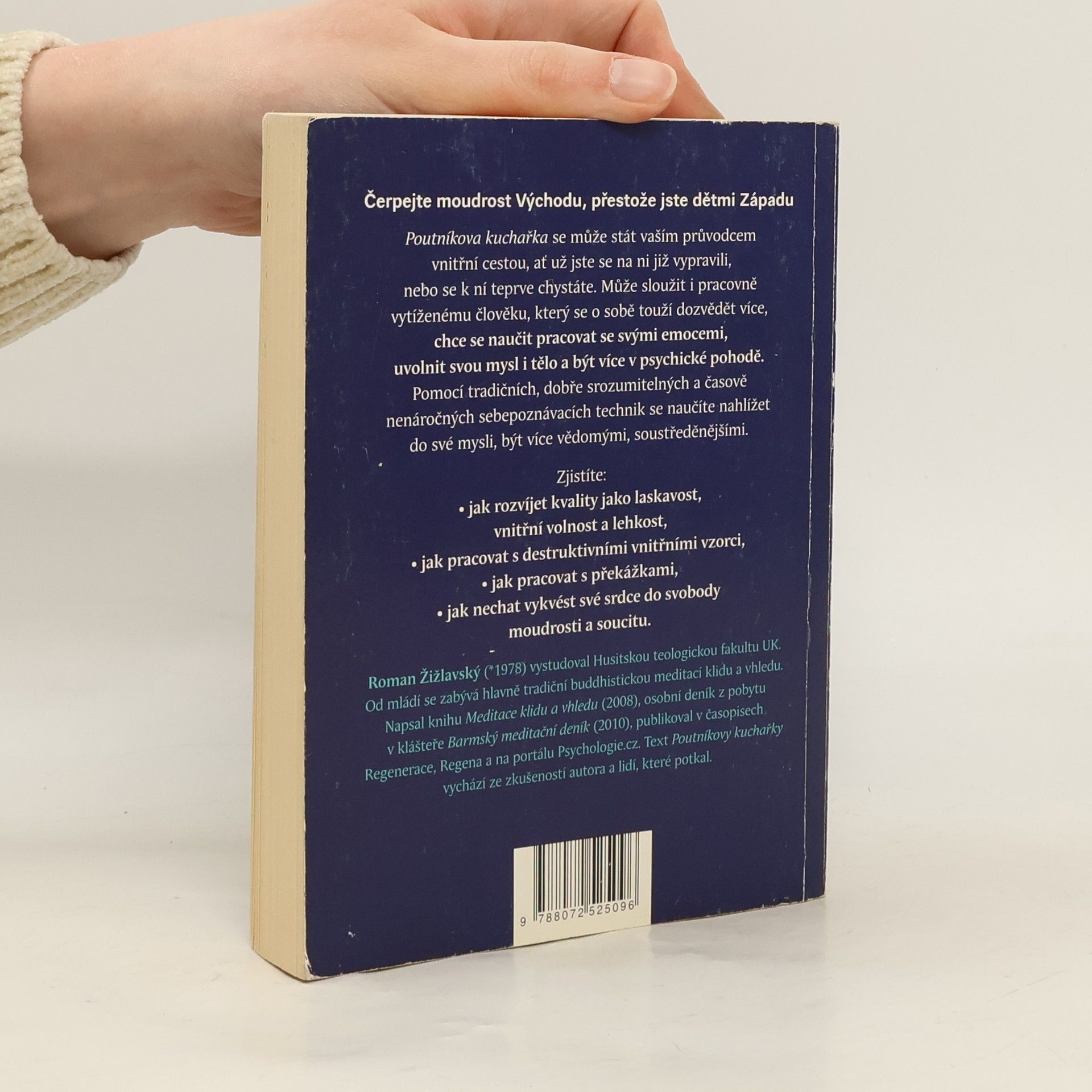 Čerpejte moudrost Východu, přestože jste dětmi Západu Poutníkova kuchařka se může stát vaším průvodcem vnitřní cestou, ať už jste se na ni již vypravili, nebo se k ní teprve chystáte. Může sloužit i pracovně vytíženému člověku, který se o sobě touží dozvědět více, chce se naučit pracovat se svými emocemi, uvolnit svou mysl a tělo a být více v psychické pohodě. Pomocí tradičních, dobře srozumitelných a časově nenáročných sebepoznávacích technik se naučíte nahlížet do své mysli, být více vědomými, soustředěnějšími. Zjistíte: - jak rozvíjet kvality jako laskavost, vnitřní volnost a lehkost, - jak pracovat s destruktivními vnitřními vzorci, - jak pracovat s překážkami, - jak nechat vykvést své srdce do svobody moudrosti a soucitu.