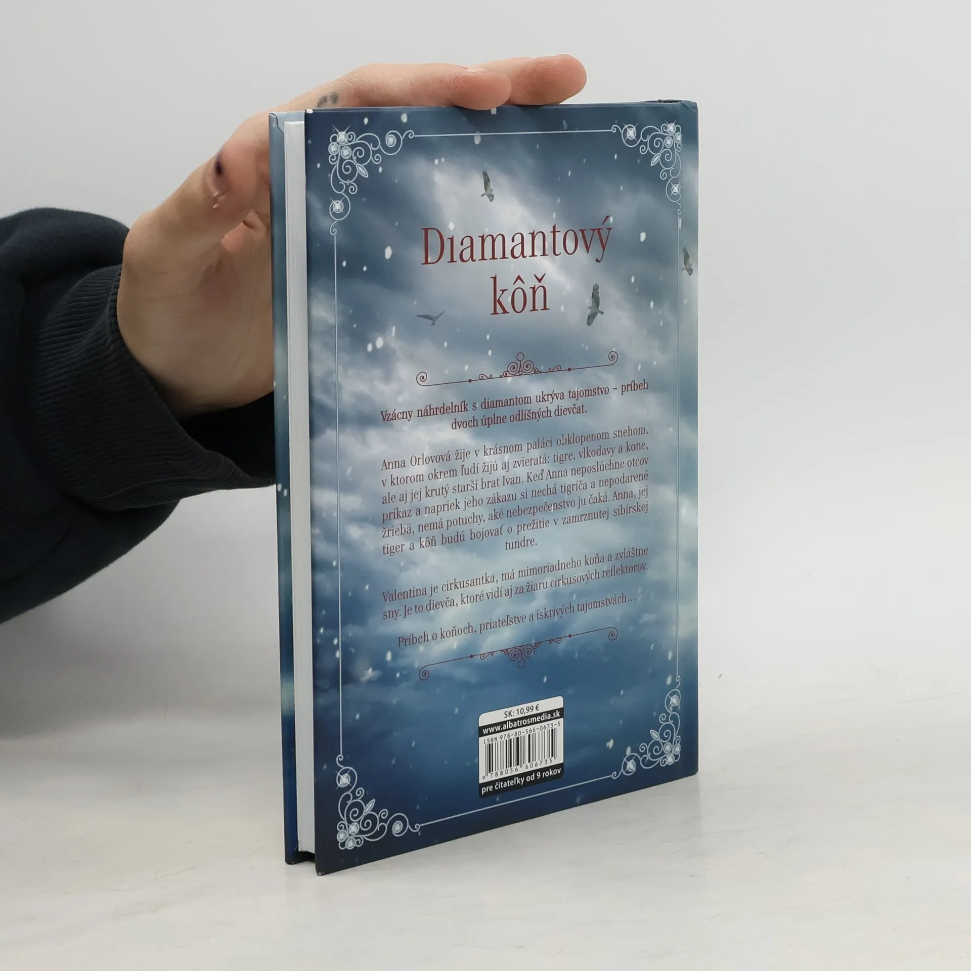 Vzácny náhrdelník s diamantom ukrýva tajomstvo — príbeh dvoch úplne odlišných dievčat. Anna Orlovová žije v krásnom paláci obklopenom snehom, v ktorom okrem ľudí žijú aj zvieratá: tigre, vlkodavy a kone, ale aj jej krutý starší brat Ivan. Keď Anna neposlúchne otcov príkaz a napriek jeho zákazu si nechá tigríča a nepodarené žriebä, nemá potuchy, aké nebezpečenstvo ju čaká. Anna, jej tiger a kôň budú bojovať o prežitie v zamrznutej sibírskej tundre. Valentina je cirkusantka, má mimoriadneho koňa a zvláštne sny. Je to dievča, ktoré vidí aj za žiaru cirkusových reflektorov. Príbeh o koňoch, priateľstve a iskrivých tajomstvách...