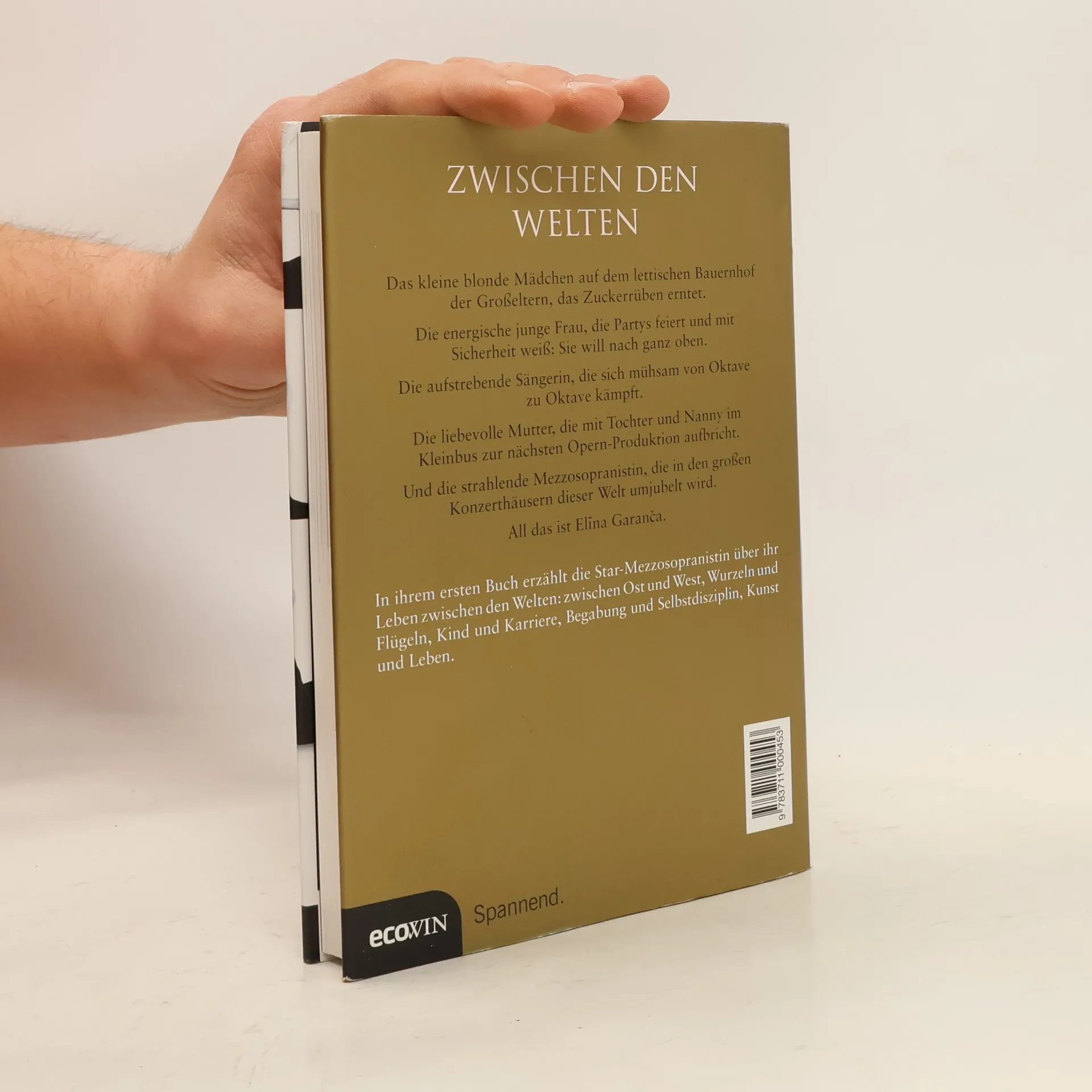 Zwischen den Welten Das kleine blonde Mädchen auf dem lettischen Bauernhof der Großeltern, das Zuckerrüben erntet. Die energische junge Frau, die Partys feiert und mit Sicherheit weiß: Sie will nach ganz oben. Die aufstrebende Sängerin, die sich mühsam von Oktave zu Oktave kämpft. Die liebevolle Mutter, die mit Tochter und Nanny im Kleinbus für die nächste Opernperiode aufbricht. Und die strahlende Mezzosopranistin, die an den großen Konzerthäusern dieser Welt umjubelt wird. All das ist El?na Garan?a. In ihrem ersten Buch erzählt die Star-Mezzosopranistin über ihr Leben zwischen den Welten: zwischen Ost und West, Wurzeln und Flügeln, Kind und Karriere, Begabung und Selbstdisziplin, Kunst und Leben.