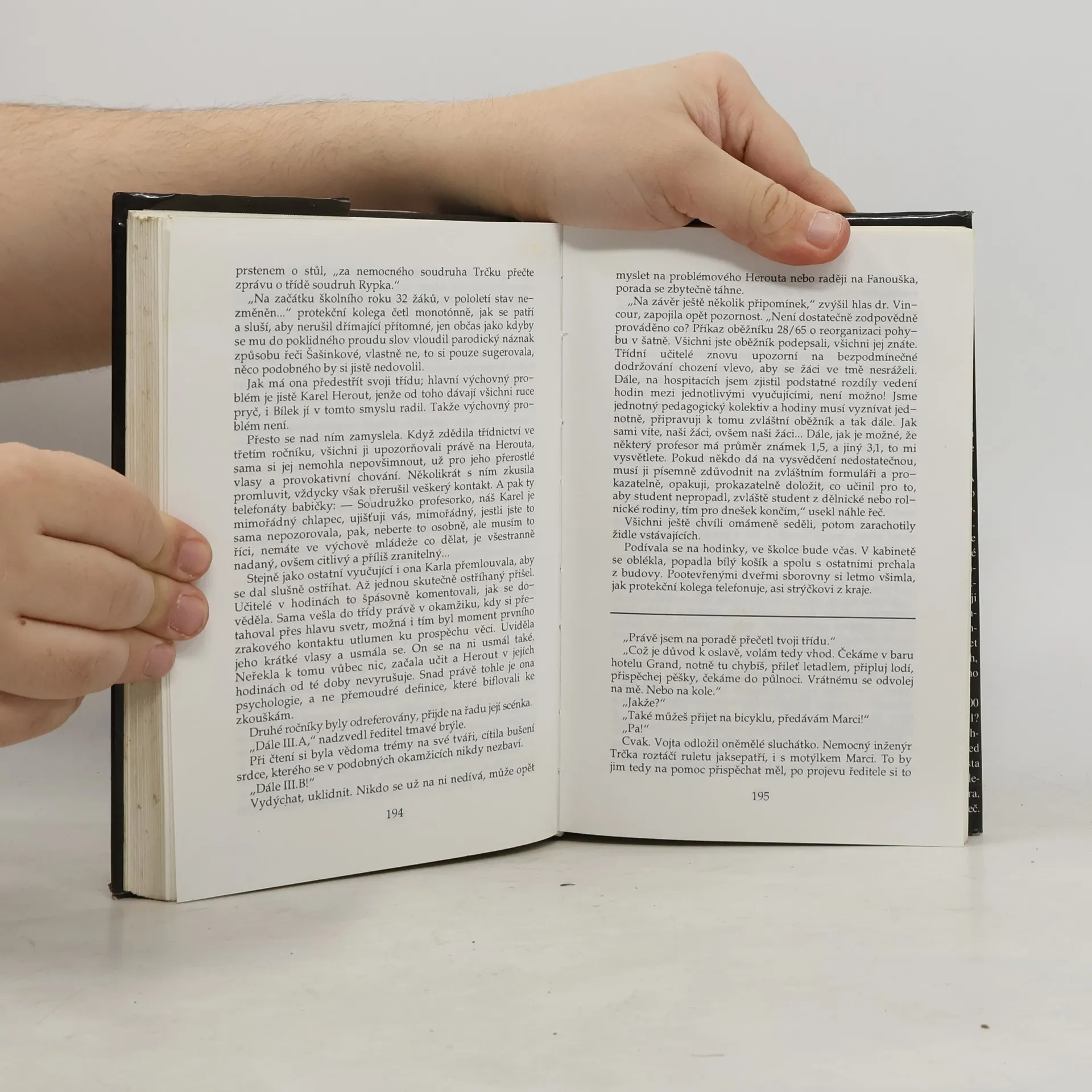 Učitelský generační román, který vyšel v roce 1986 jako samizdat. Hlavního představitele Vojtu poznáváme na večírku, kterým završuje své studium, jsme účastni jeho holohlavé promoce, prožíváme s ním krkolomné učitelské štace, známost s nebezpečně atraktivní a aktivní knihkupkyní Jitkou, později se svedenou a opuštěnou učitelkou Štěpánkou... To vše probíhá v prostředí brněnské umělecké bohémy 60. let i v jiných prostředích, neméně zajímavých, nasvíceno reflektorem grotesky a černého humoru