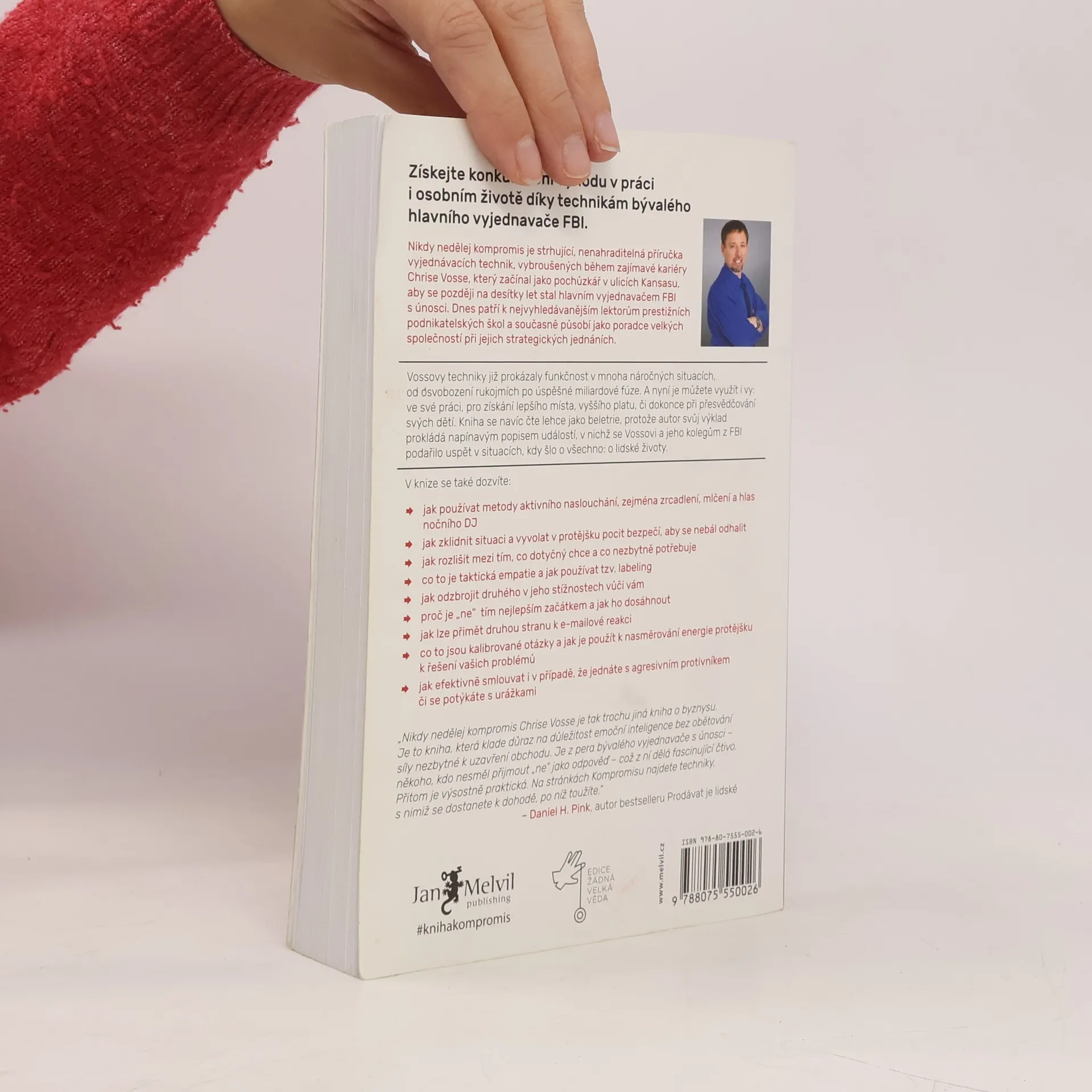 Život je plný vyjednávání, ať už se jedná o nákup auta, pořízení domu nebo sjednání podmínek s partnerem či dětmi. Klasické knihy jako Getting to Yes či Crucial Conversations obohatily arzenál vyjednavačů, avšak některé metody se ukázaly jako neefektivní a potřebují aktualizaci. Chris Voss, bývalý hlavní vyjednavač FBI, přináší nový, na neurovědě podložený přístup. Začínal jako běžný policista a postupně se vypracoval na specialistu na vyjednávání s nebezpečnými zločinci, kde šlo o lidské životy. V těchto situacích nelze dělat kompromisy. Vossův přístup, založený na dlouholeté praxi a výzkumech FBI, nenahrazuje předchozí metody, ale rozvíjí je a překonává. FBI jako první začala v jednáních pracovat s emocemi, zatímco dříve se vyučoval přístup založený na racionálním jednání obou stran. Po 25 letech ve FBI se Voss zaměřil na firemní vyjednávání a stal se vyhledávaným konzultantem, který asistuje u obchodních jednání Fortune 500 a přednáší na prestižních školách jako Harvard či MIT. Jeho kniha představuje významný a praktický příspěvek k tématu vyjednávání, které ovlivňuje naše osobní i pracovní životy.
