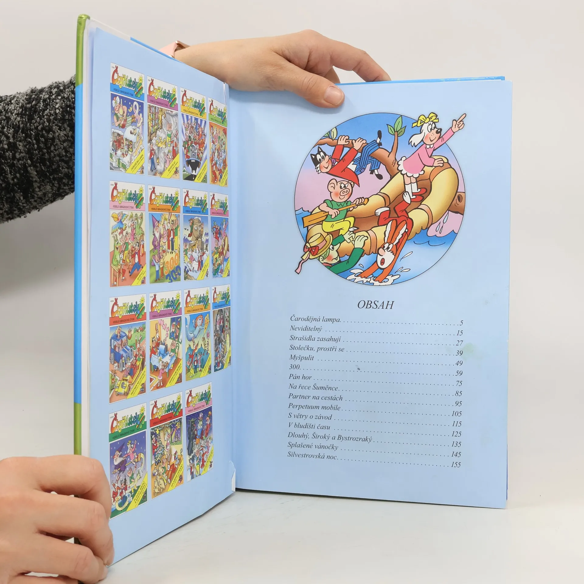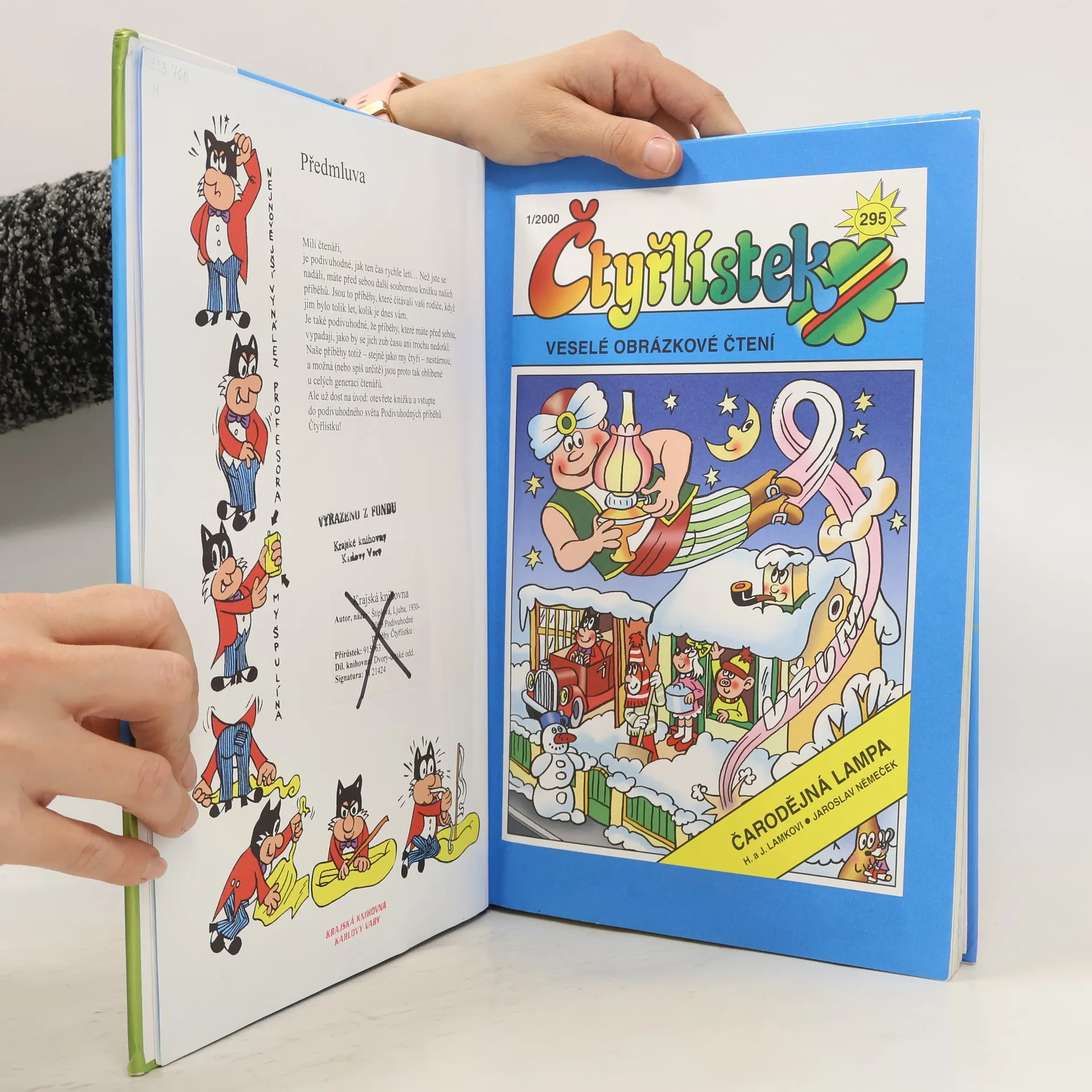 Kniha jistě zaujme nejednu generaci čtenářských fanoušků fenoménu Čtyřlístek. Najdeme zde nově pojaté klasické pohádkové příběhy (Čarodějná lampa, Stolečku, prostři se, Dlouhý, Široký a Bystrozraký), příběhy strašidelné (Strašidla zasahují), jsou tu i nové Myšpulínovy vynálezy (Myšpulit, Perpetuum mobile), příběhy ze současnosti (Na řece Šuměnce, Pán hor, Partner na cestách, V bludišti času), upírská historka na silvestrovském plese či veselá komedie Splašené vánočky. V tomto ročníku je navíc i jedno zvláštní číslo, totiž jubilejní třístovka, v níž kromě vlastního komiksu s „čarodějnou“ tematikou najdeme i úkoly, které musíte s Fifinkou, Bobíkem, Myšpulínem a Pinďou vyřešit. Prostě jedinečná knížka plná zábavy pro celou rodinu a nutnost pro každého správného sběratele Čtyřlístku. Vydání obsahuje všech patnáct příběhů Čtyřlístku z přelomu milénia˝, a to kompletní ročník 2000.