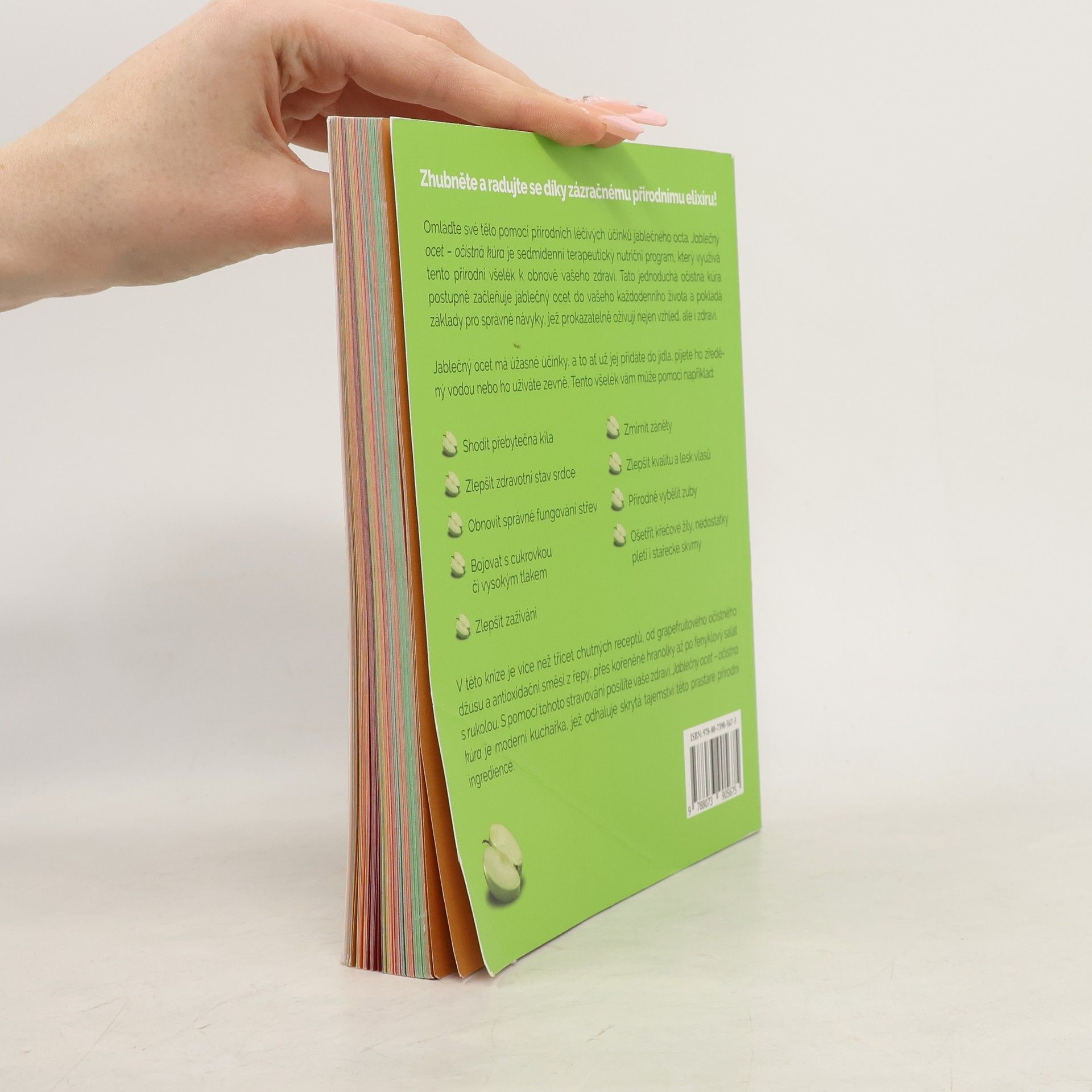 Uzdravte se, zhubněte a bojujte s vysokým cholesterolem pomocí zázračené přírodní kúry -- Jablečný ocet je zájemci o zdravou stravu velmi vyhledávaný. Ale pozor! Nesmí být zaměňován s destilovaným, potravinářsky zpracovaným octem. Jablečný ocet ACV je nefiltrovaný, fermentovaný jablečný mošt, který je bohatý na biologicky aktivní složky, díky nimž je bohatý na antioxidanty, antimikrobiální látky, je antiglykemický a má mnoho dalších prospěšných vlastností. Proto tento jablečný ocet pomáhá při potížích s cukrovkou, prospívá srdci, je vhodný při hubnutí, ale také pomáhá třeba při zácpě nebo proti bradavicím. Tato kniha vám představí všechny zdravotní výhody ACV a nabídne týdenní očistnou kúru, díky níž můžete zhubnout a nastoupit cestu k lepšímu zdravotnímu stavu.
