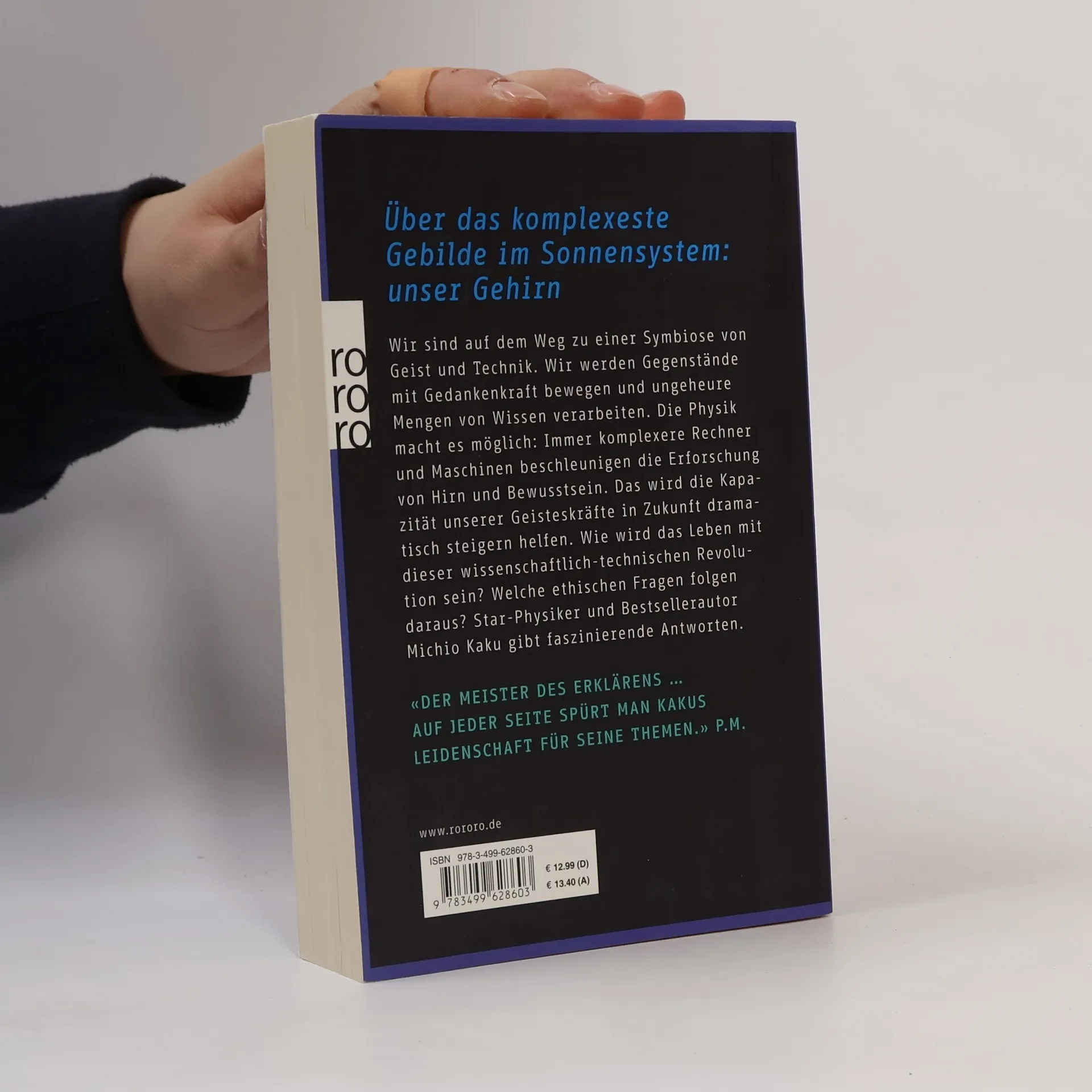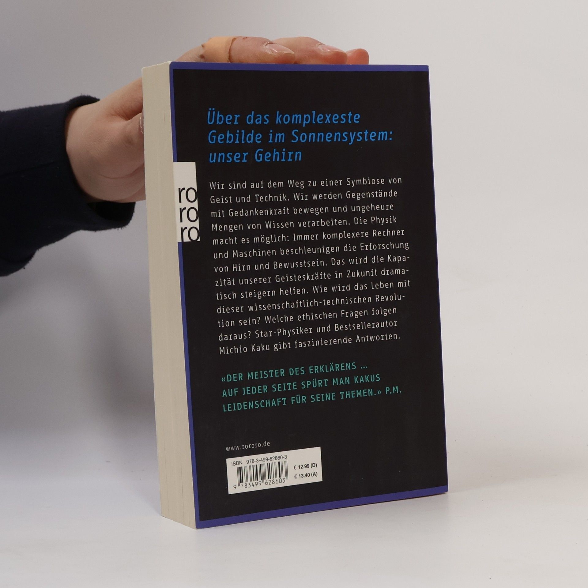 Über das komplexeste Gebilde im Sonnensystem: unser Gehirn Wir sind auf dem Weg zu einer Symbiose von Geist und Technik. Wir werden Gegenstände mit Gedankenkraft bewegen und ungeheure Mengen von Wissen verarbeiten. Die Physik macht es möglich: Immer komplexere Rechner und Maschinen beschleunigen die Erforschung von Hirn und Bewusstsein. Das wird die Kapazität unserer Geisteskräfte in Zukunft dramatisch steigern helfen. Wie wird das Leben mit dieser wissenschaftlich-technischen Revolution sein? Welche ethischen Fragen folgen daraus? Star-Physiker und Bestsellerautor Michio Kaku gibt faszinierende Antworten. «Der Meister des Erklärens … Auf jeder Seite spürt man Kakus Leidenschaft für seine Themen.»