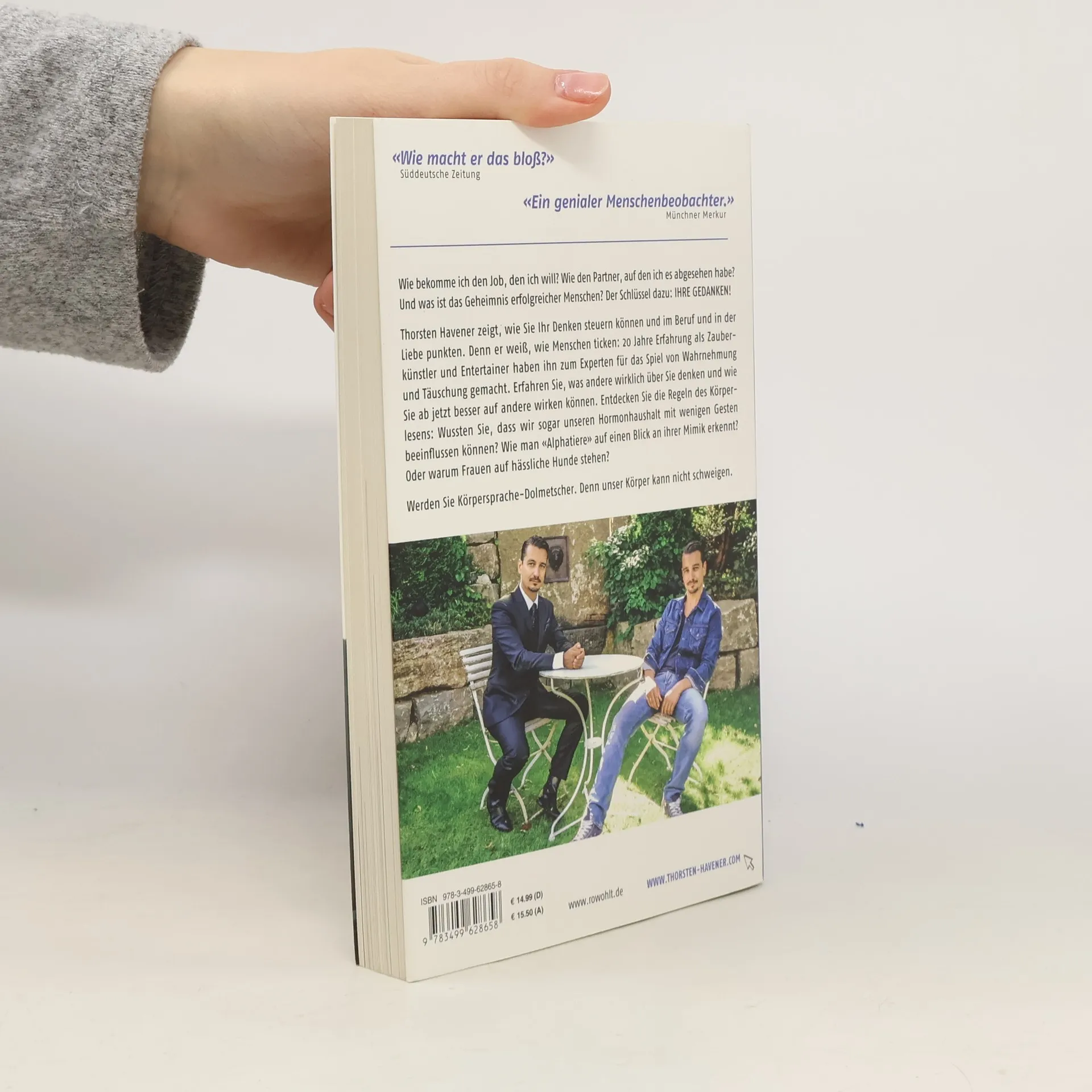 Wie bekomme ich den Job, den ich will? Wie gewinne ich den Partner meiner Träume? Der Schlüssel liegt in unseren Gedanken! Thorsten Havener zeigt, wie Sie Ihr Denken steuern und in Beruf und Liebe erfolgreich sein können. Mit 20 Jahren Erfahrung als Zauberkünstler hat er ein tiefes Verständnis für Wahrnehmung und Täuschung entwickelt. Lernen Sie, was andere wirklich über Sie denken und wie Sie besser auf andere wirken können. Entdecken Sie die Regeln des Körperlesens: Wussten Sie, dass Gesten sogar unseren Hormonhaushalt beeinflussen können? Erfahren Sie, wie man „Alphatiere“ an ihrer Mimik erkennt und warum Frauen oft zu hässlichen Hunden hingezogen werden. Werden Sie Körpersprache-Dolmetscher, denn unser Körper kann nicht lügen. Der Körperleser-Dreisatz zeigt, dass zuerst der Gedanke, dann der Körper und schließlich die Worte kommen. Achten Sie darauf, Ihr Gegenüber zuerst anzulächeln, bevor Sie sprechen. Die Fußhaltung verrät, in welche Richtung jemand denkt. Zeigen Ihre Fußspitzen auf Ihr Gegenüber? Ein Schritt auf die Person zu kann deren Einstellung zu Ihnen offenbaren. Das Wackel-Dackel-Prinzip demonstriert, dass Nicken ansteckend ist und Ihr Gegenüber dazu bringt, eher „ja“ zu sagen. Entschlüsseln Sie den Körpersprache-Code von Frauen und Männern in Beruf und Liebe, unterstützt durch wissenschaftliche Erkenntnisse und faszinierende Experimente.