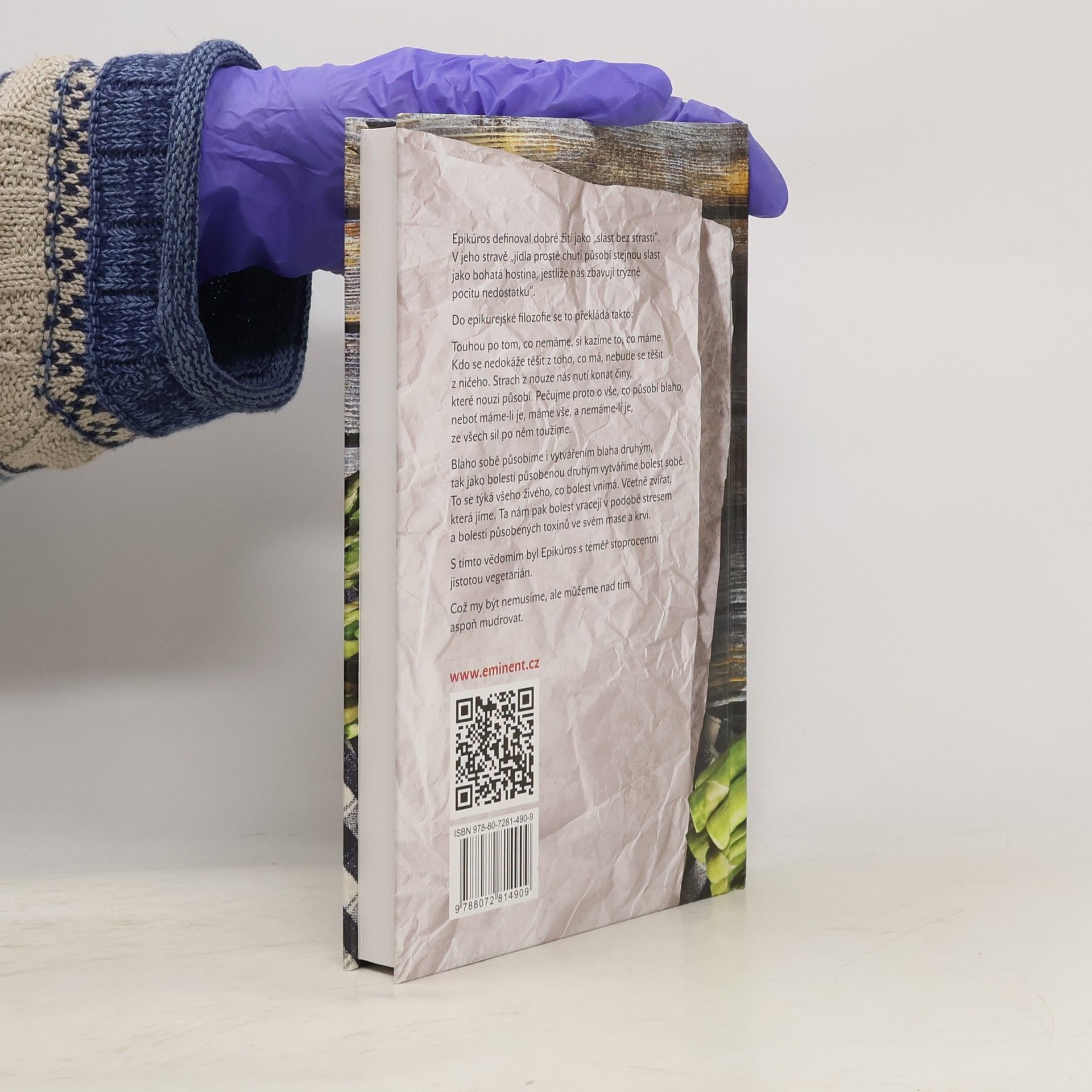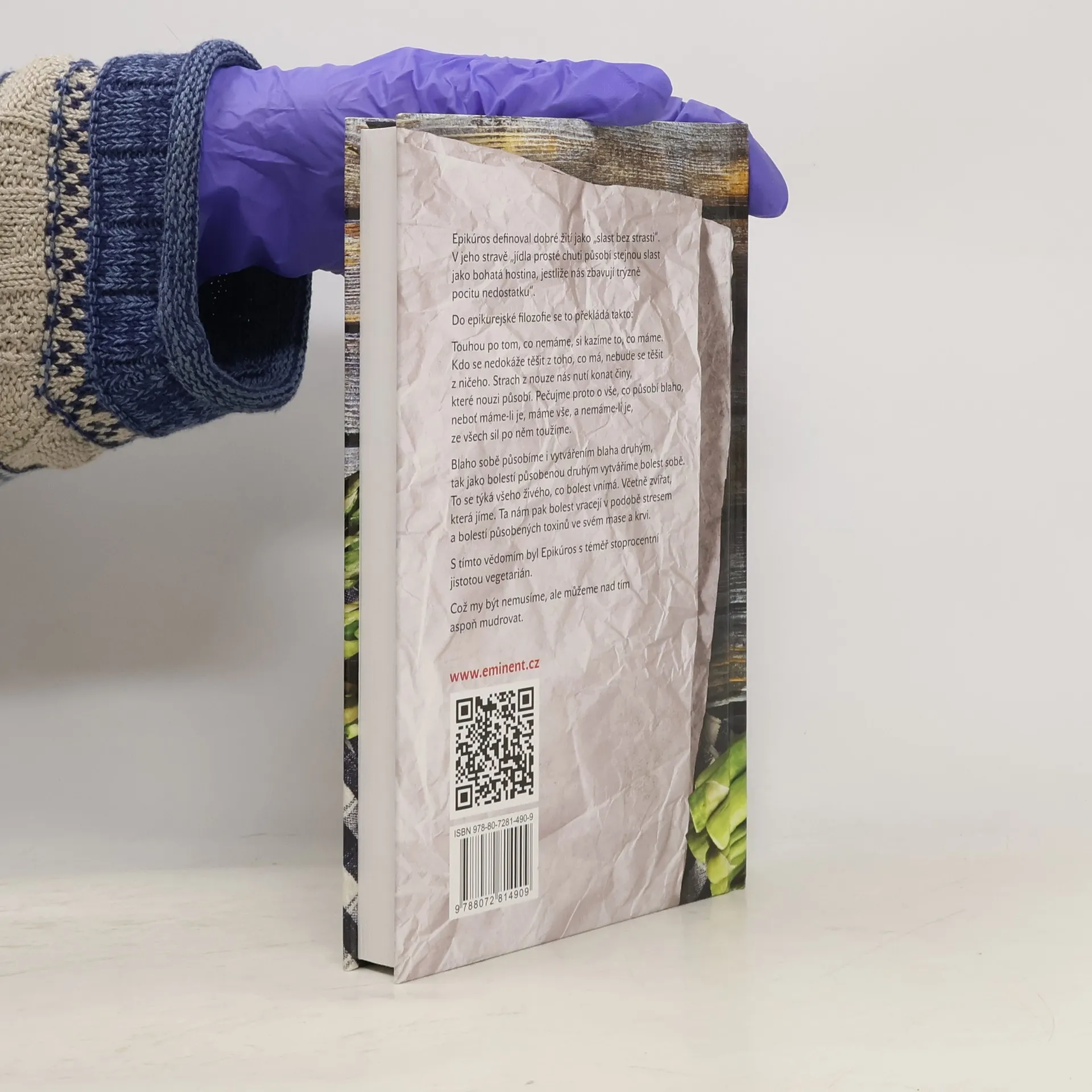Epikúros definoval dobré žití jako "slast bez strasti". V jeho stravě "jídla prosté chuti působí stejnou slast jako bohatá hostina, jestliže nás zbavují trýzně pocitu nedostatku". Do epikurejské filozofie se to překládá takto: Touhou po tom, co nemáme, si kazíme to, co máme. Kdo se nedokáže těšit z toho, co má, nebude se těšit z ničeho. Strach z nouze nás nutí konat činy, které nouzi působí. Pečujme proto o vše, co působí blaho, neboť máme-li je, máme vše, a nemáme-li je, ze všech sil po něm toužíme. Blaho sobě působíme i vytvářením blaha druhým, tak jako bolestí působenou druhým vytváříme bolest sobě. To se týká všeho živého, co bolest vnímá. Včetně zvířat, která jíme. Ta nám pak bolest vracejí v podobě stresem a bolestí působených toxinů ve svém mase. S tímto vědomím byl Epikúros s téměř stoprocentní jistotou vegetarián. Benjamin Kuras v této netradiční kuchařce svou vtipnou formou předkládá řadu receptů, která budou působit blaho vám i vašemu okolí.